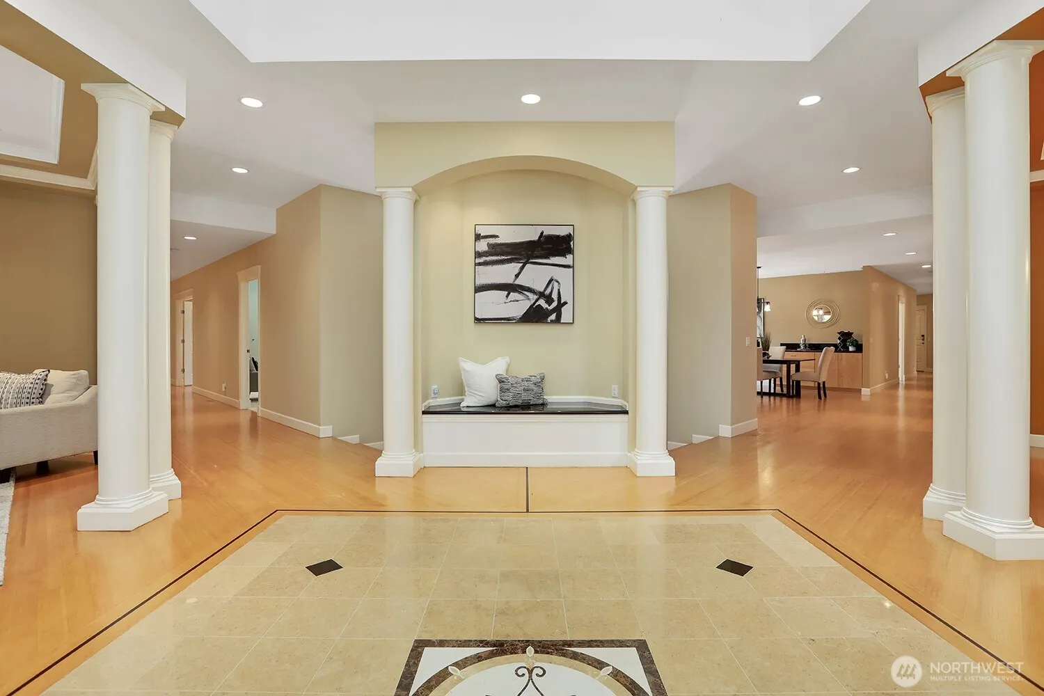 Elegant and expansive, this distinguished Kenmore estate on over 0.5 acre offers refined living throughout. A grand foyer welcomes you into formal living, dining, and sitting rooms. The gourmet kitchen boasts high-end appliances, gas range, double ovens, and walk-in pantry. With 6 bedrooms—5 en-suite—including a serene main suite with fireplace, office, and spa-like bath, comfort abounds. Enjoy a meditation room, bonus theater space, smart tech, private sports court, and 4-car garage. One of a kind property for those searching for a luxurious multigenerational living.