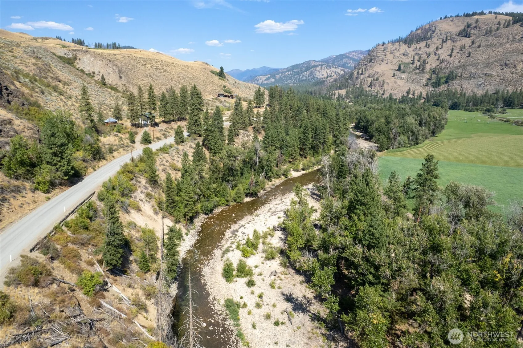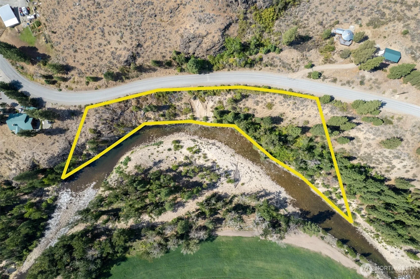 WEST CHEWUCH RIVERFRONT! Rare 5-acre parcel with 900+ feet of dramatic riverfront, featuring sandy beach, pebble wading areas, and the year-round sound of rushing water. A level building site overlooks the vast Chewuch River Valley corridor and river. Perfect for your cabin, yurt, or tiny home—or park your RV and start enjoying the Methow lifestyle today. Comes with Irrigation from Skyline Ditch. Power is available along the road for easy utility connection. Adventure awaits with National Forest access and ski trails nearby. Whether you envision a seasonal getaway or a full-time retreat, this unique property is a true blank canvas in the sweetest nook of the Methow Valley.