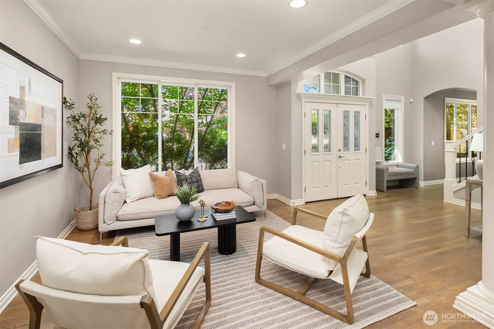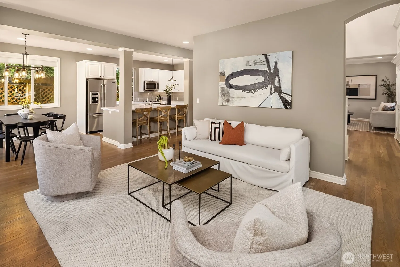 Tucked at the end of a quiet cul-de-sac, this fantastic Moorlands two-story home backs to a serene greenbelt for ultimate privacy. Grand entry with open staircase welcomes you to this spacious, yet comfortable home. Well-appointed main floor includes ultimate hosting layout with formal dining plus open-concept living and updated kitchen with large island. Flex room is perfect for entry-level bedroom, den, or office. Upstairs features four generous bedrooms, including a primary with walk-in closet and spacious bath, plus convenient laundry. Oversized 2-car garage offers excellent storage. Great fenced & landscaped yard ready for pets, gardening, or play. All in the top-rated Northshore School District near St. Edwards and Finn Hill Parks.