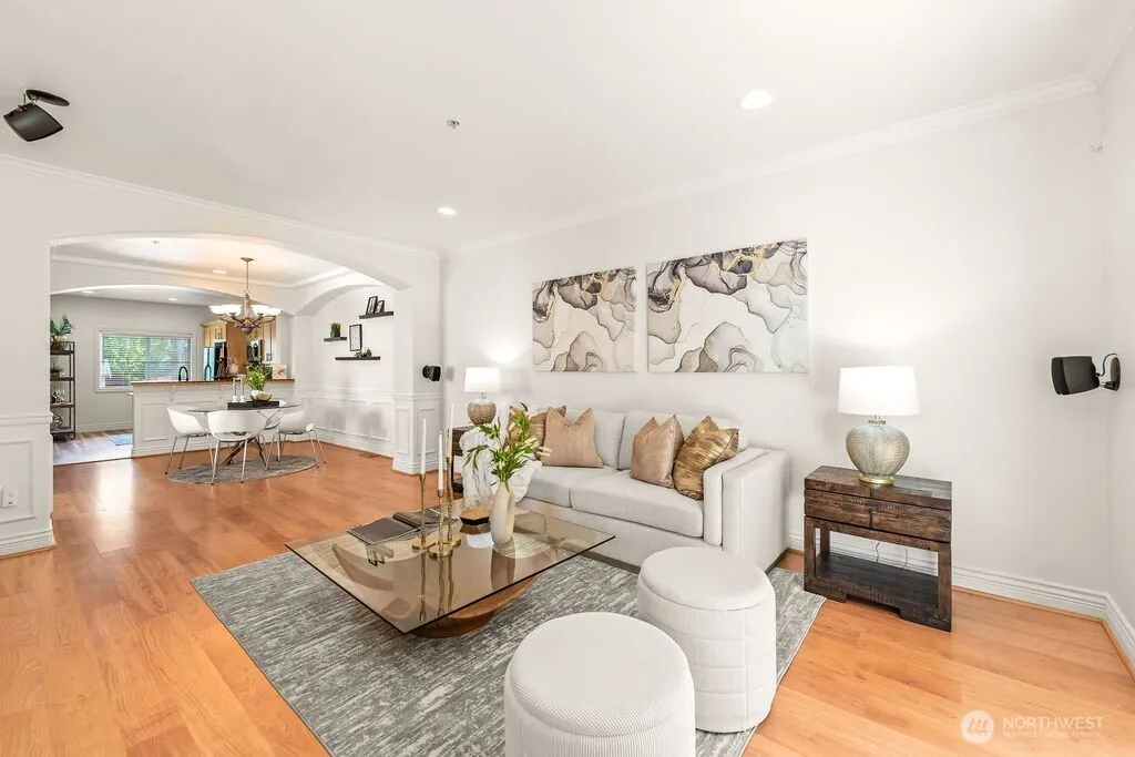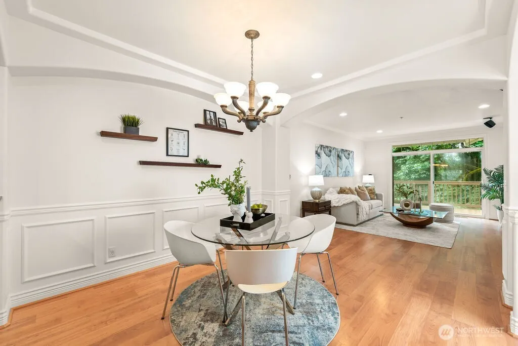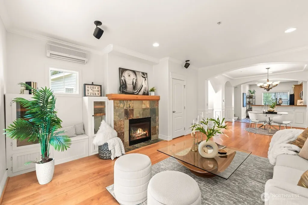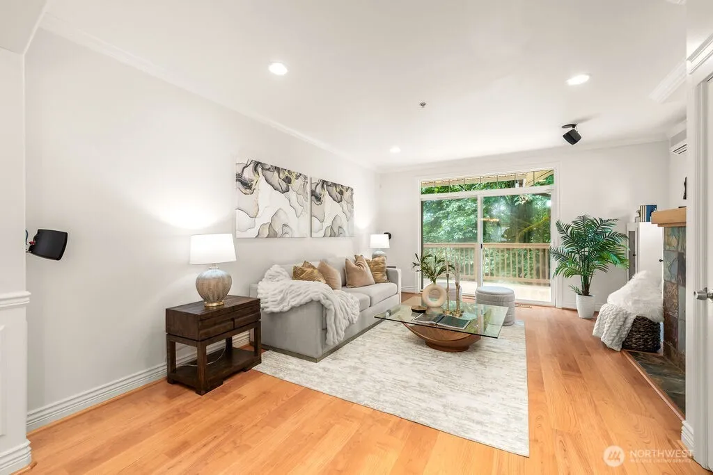 AVAILABLE FOR SHOWINGS AGAIN. BROKERS, PLEASE SHOW THIS Gorgeous and updated townhome in boutique Creekside Townhomes complex! End-unit home overlooking protected natural habitat is conveniently located close to Burke Gilman Trail and easy access to Seattle, Eastside and North. High ceilings, lots of natural light, open floor plan: cozy living room w/gas fireplace & slider to deck w/greenbelt view flows to opulent dining and large kitchen w/granite countertops & raised bar, abundance of cabinets & room for breakfast table. Upstairs are spacious private en-suite w/walk-in closet & 3/4 bath; 2nd sizable bedroom & another bath. Lower level flex room-perfect for home office or gym has slider to patio w/storage.2 car tandem garage.No rental cap.