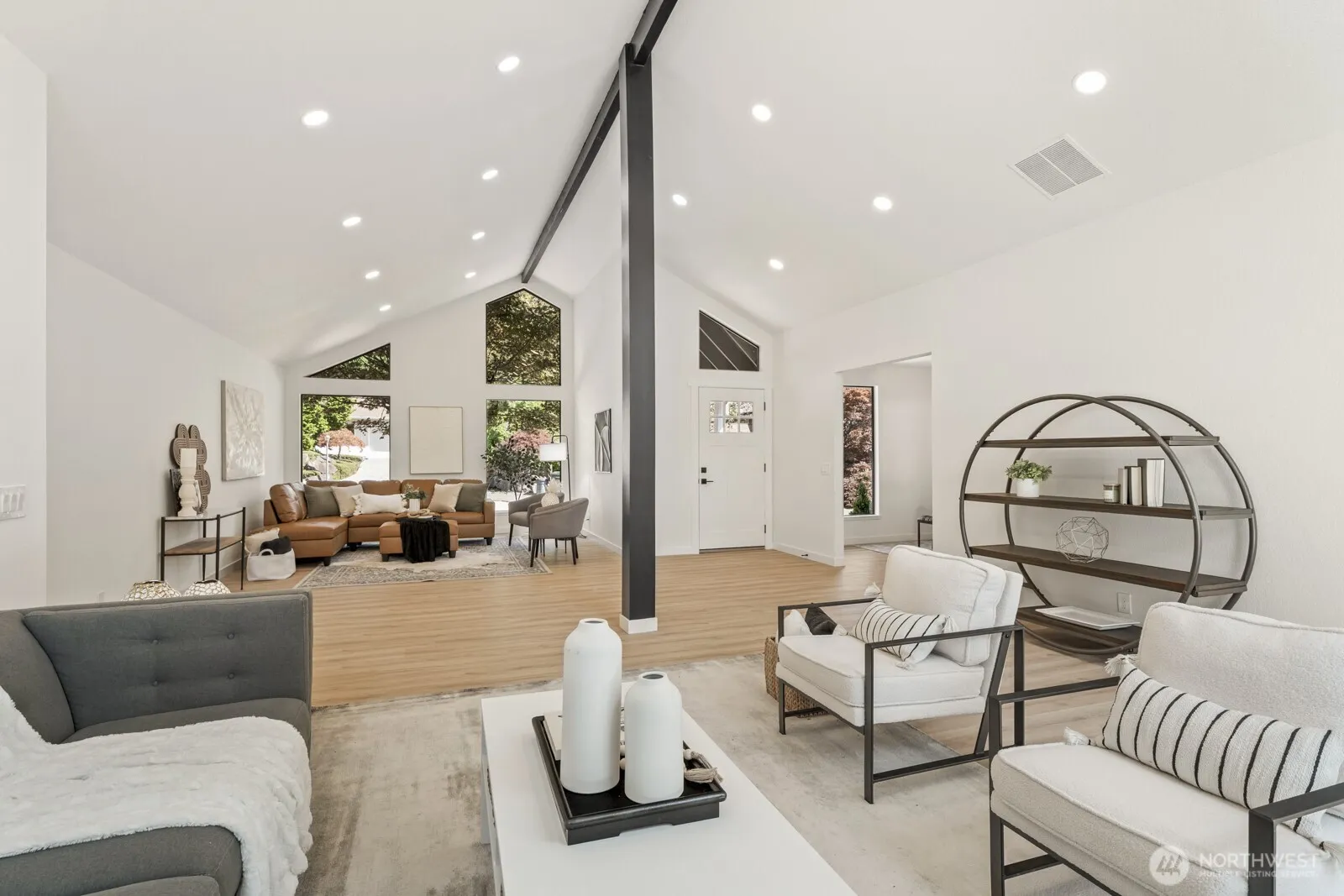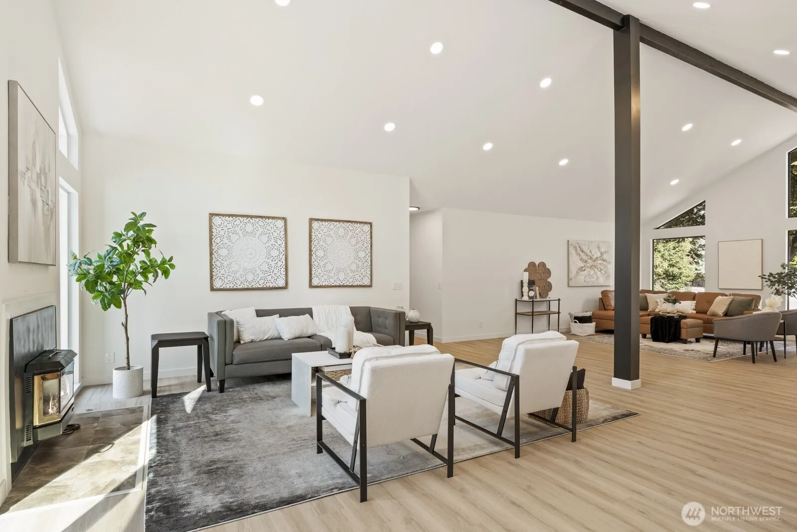 Stunning remodeled rambler on quiet cul-de-sac! Bright, open living spaces featuring soaring ceilings, craftsman millwork, designer paint colors, gleaming floors, chef’s kitchen, walls of windows, & more. Light infused great room invites entertaining or quiet evenings at home. Designer kitchen with custom cabinets, quartz counters & SS appliances. Serene primary suite with walk-in shower, dual vanities, and his and hers closets. Park-like yard with mature landscaping, entertainment size deck, outbuilding, & lots of garden and/or play area. New roof & exterior paint. Acclaimed Northshore Schools. Easy access to Lake Washington, Saint Edward Park, eateries, shopping, and only minutes to Seattle and the Eastside. Hurry!!!