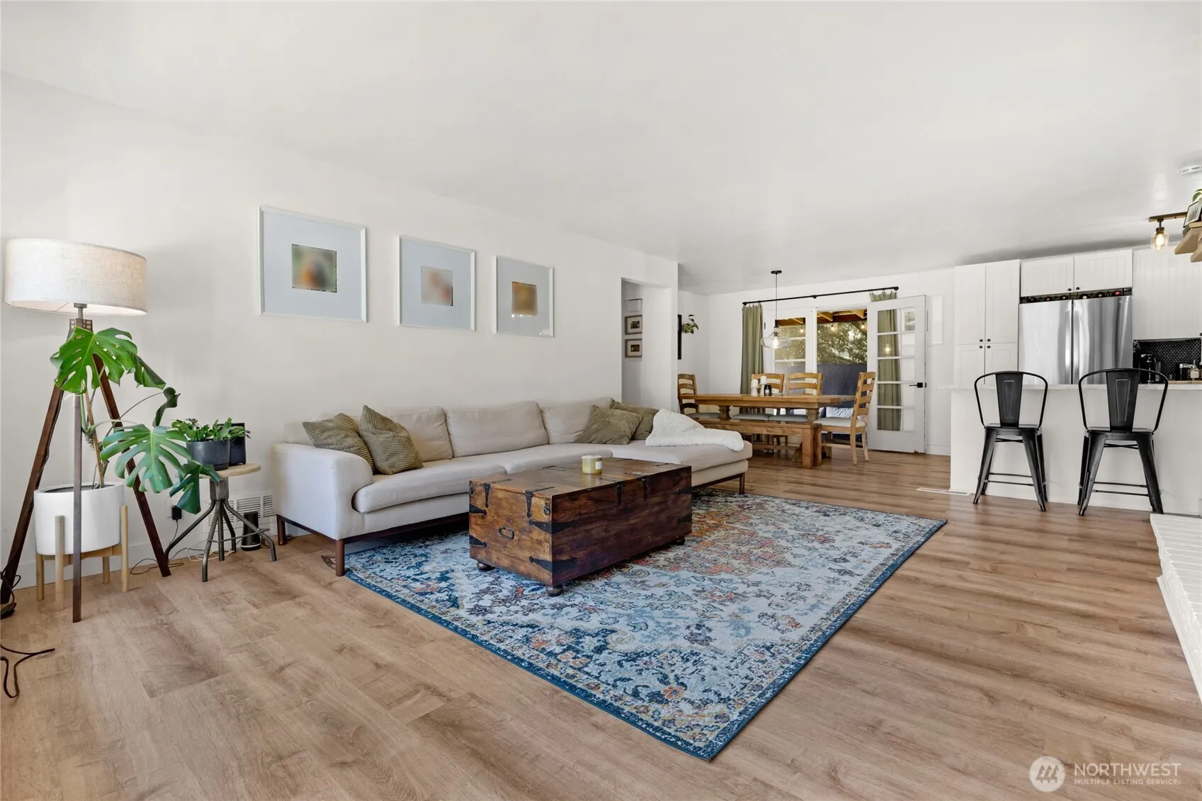This updated rambler is a rare find in the Northshore School District. The kitchen features new quartzite countertops & stainless steel appliances. The warm tones of the new LVP floors make you feel at home. The kitchen opens up to a cozy living room & dining room. The dining room has French doors to the covered patio. Down the hall you have 3 bedrooms & 1 bath. The home is rounded out with a utility room & 1-car garage. Home sits on a large & private corner lot on a dead end street. There is tons of street parking for guests too. Walking distance to Downtown Kenmore, Lake Washington, Inglewood Golf Course, breweries & more! New furnace, heatpump & gas fireplace in 2021. Home is pre-inspected. All appliances stay except chest freezer.