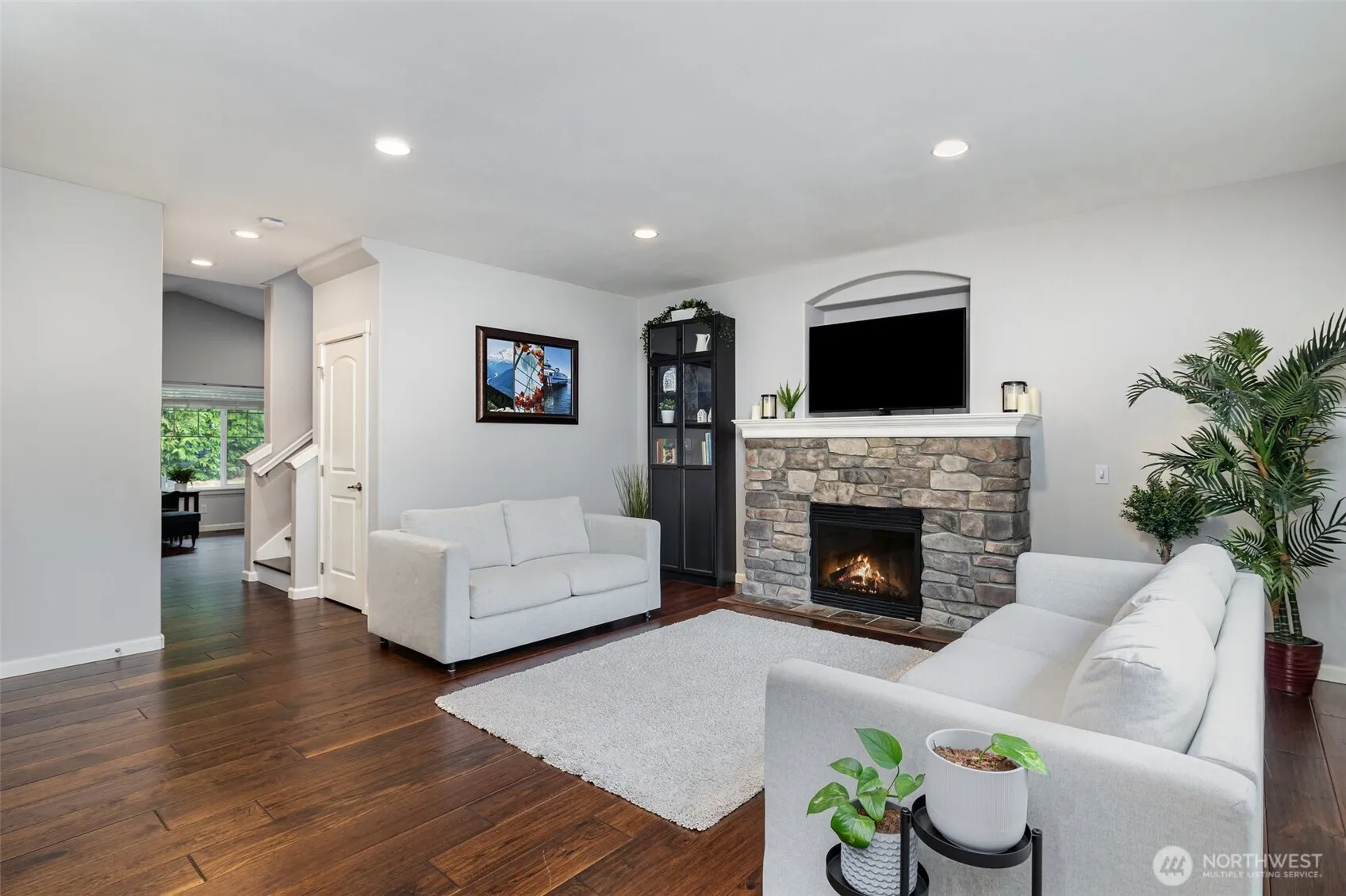 Abundant natural light, Brazilian Teak hardwood & plenty of space to entertain with both a formal living room (currently used as large home office/game room) & a light-filled Great Room w/fireplace, space for large dinging table & a HUGE kitchen! Granite countertops, stainless appliances & so much cabinet space! Buyers choice: current induction stove or the former gas range can be reinstalled. 4 large bedrooms upstairs, including primary w/walk-in closet & 5-piece bath. Double sinks in main bath, conveniently located laundry & a bonus area perfect for a small piano space or petite home office. A/C, easy-care fenced yard/large patio & hidden gate to adjacent play area. Close in time to start the year in the highly rated NORTHSHORE SCHOOLS!