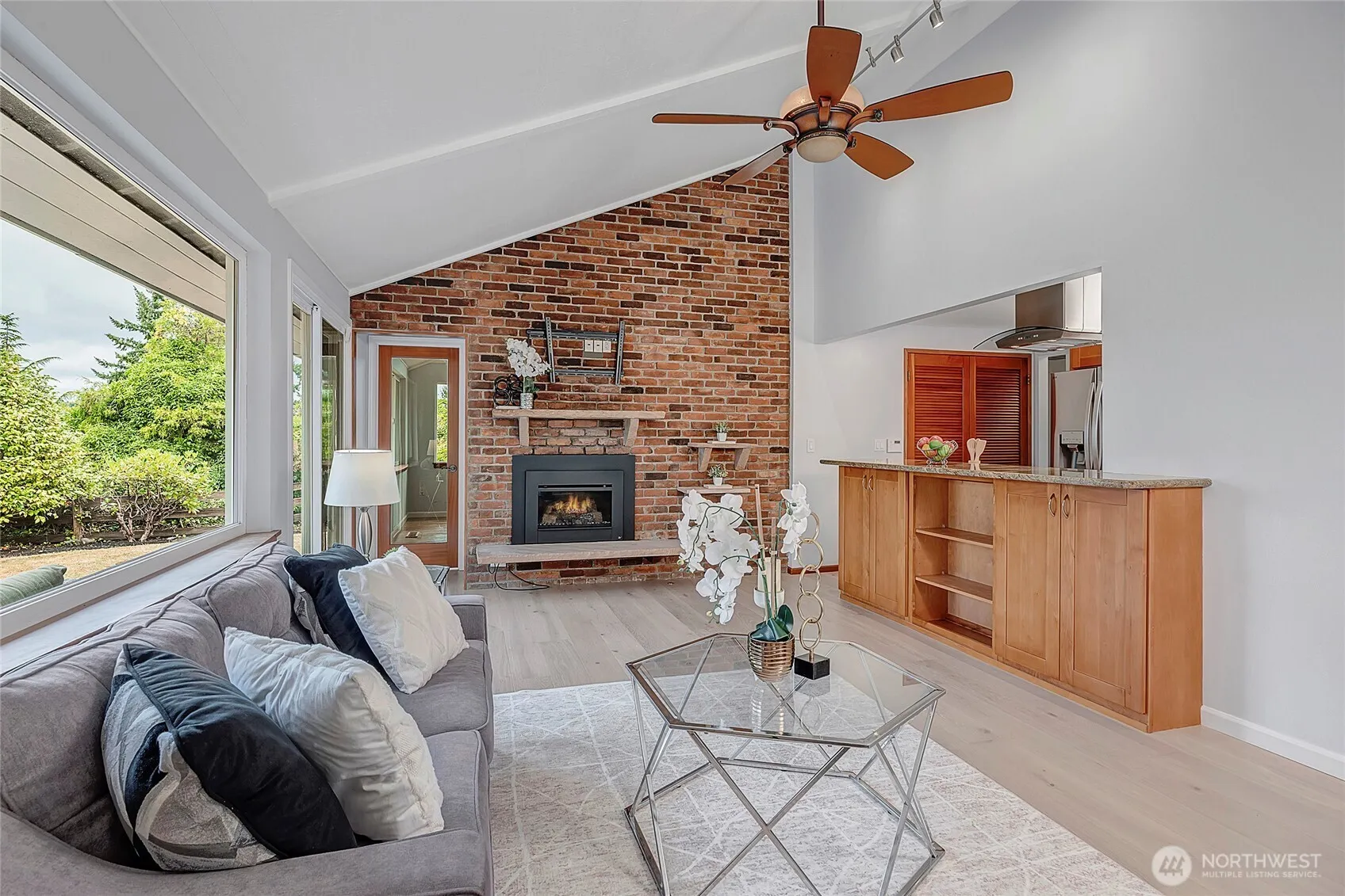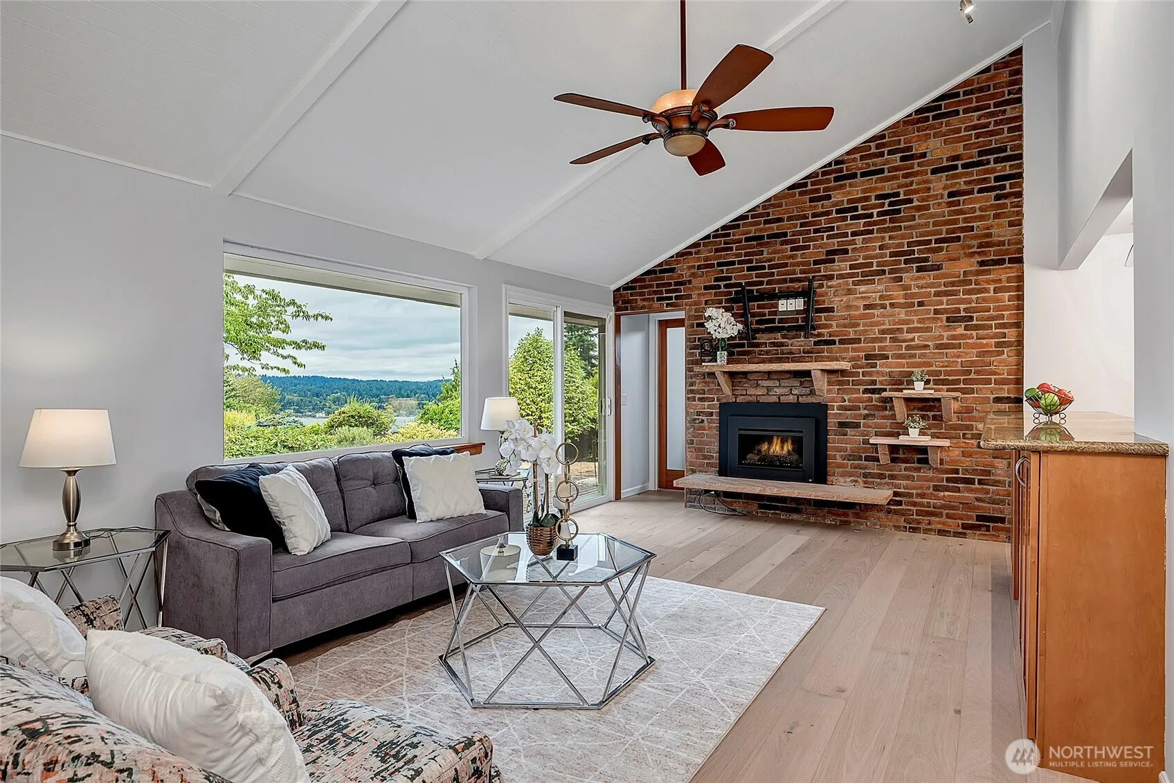 Tucked within the Arrowhead neighborhood of Kenmore, this 4-bed, 2.75 bath rambler offers Lake Washington views, Northshore Schools & room for your boat or RV. Enter through the manicured courtyard and step onto new hardwood floors that spill through the hallways and living areas. The kitchen with solid cherry cabinets, granite countertops, new appliances and a gas range overlooks the family room w/ large picture window & gas fireplace. Primary bedroom suite is generous in size, with a 5-piece bath, walk-in closet & access to deck. Beyond the formal living room with large windows & vaulted ceilings are the other 3 beds, including another with en-suite bath! All this + new paint inside & out, new roof, A/C & garden shed w/ covered patio.