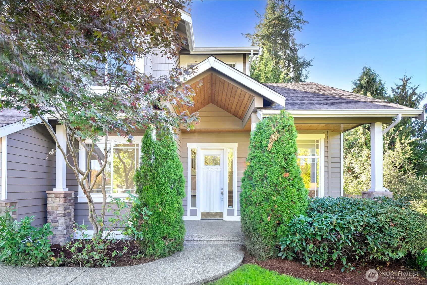 Welcome to this spacious and serene Kenmore home just steps from Inglemoor High School. Soaring vaulted ceilings and wrought-iron railings set an elegant tone, while the open-concept layout offers room for everyone. The gourmet kitchen features a large island, pantry, and gas range—perfect for everyday living or entertaining. Enjoy multiple gathering spaces, including formal living and dining rooms, a cozy family room with fireplace, and a main-floor den. Upstairs, find 3 bedrooms plus a generous bonus room and a luxurious primary suite with soaking tub, double shower, and walk-in closet. The large backyard with fruit trees and covered patio invites outdoor living. Three-car garage and Northshore’s top-rated schools complete the package!