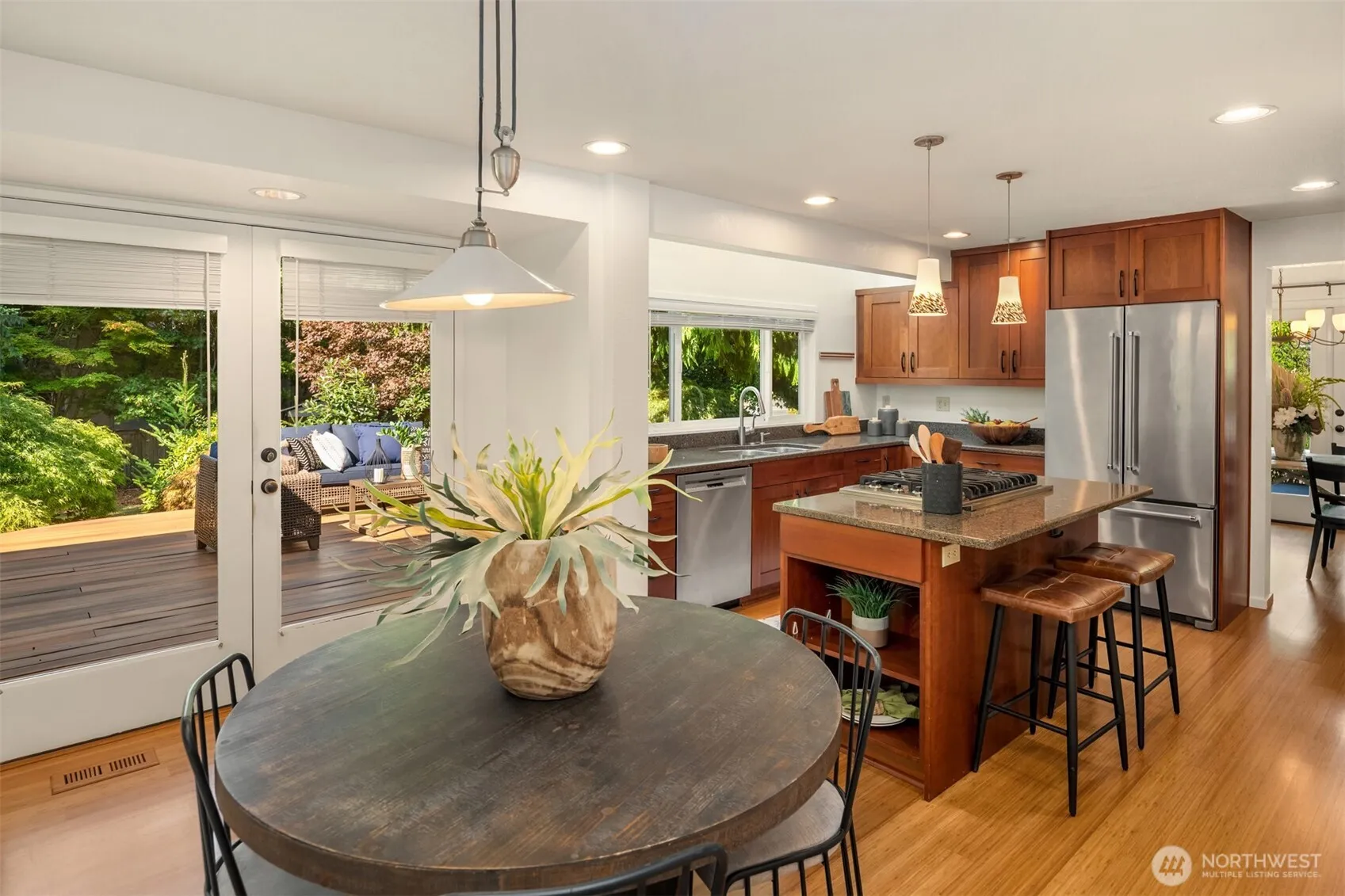 Storybook Kenmore home nestled on a quiet cul-de-sac in the coveted McDonald Highlands community. This timeless residence boasts a sundrenched interior w/open concept living spaces & soaring cathedral ceilings. Thoughtfully designed floorplan offers formal living & dining rooms, chef’s epicurean kitchen, huge family rm & sumptuous primary suite w/flex space ideal for home office, gym or nursery. Expertly sited on a 15k+ SF corner lot, this idyllic property offers extensive garden areas w/mature plantings, exceptional privacy & massive entertainment deck perfect for endless summer BBQs. Incredible location in the award-winning Northshore SD, just blocks to Arrowhead Elementary, The Lodge at St Edwards Park, Inglewood CC & Burke Gilman Trail.