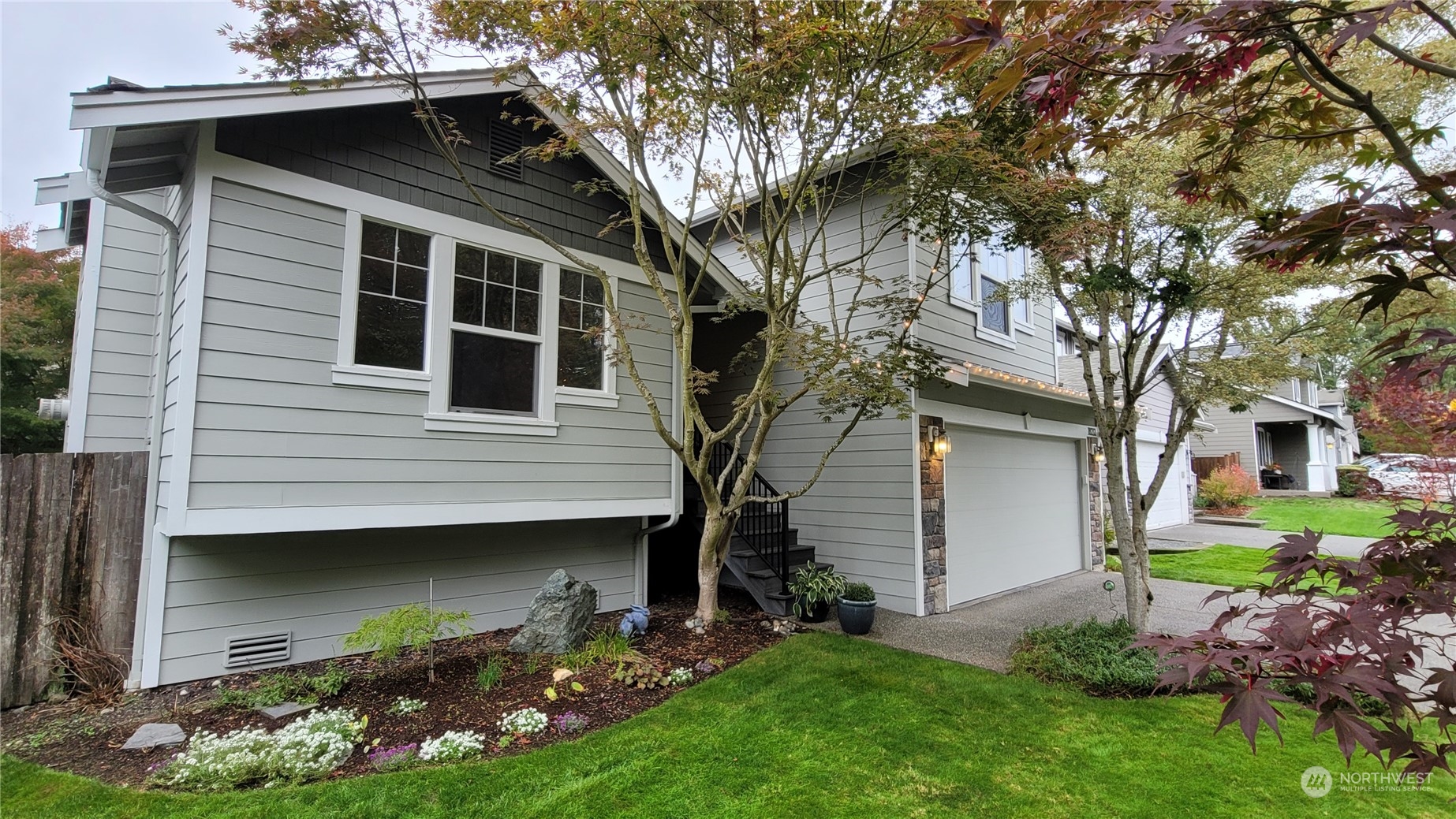 Welcome to North Creek! Prime location on private road across from community park. Convenient layout, vaulted ceilings, spacious living/family rooms, primary bedroom w/ walk-in closet and 5 piece bath. Stainless appliances, gas range, gas fireplace, washer/dryer, almost new hot water tank, fiber cement siding, recent full exterior paint and composite decking. Kitchen center island, cabinets and closets provide loads of storage, just serviced gas furnace. Low maintenance fenced yard w/ gorgeous maples, backyard deck and patio, and enjoy park, basketball court, tennis court, play area, and quiet picnic area just steps away. Very Clean and well kept home. Northshore school district, minutes from Mill Creek Town Center.