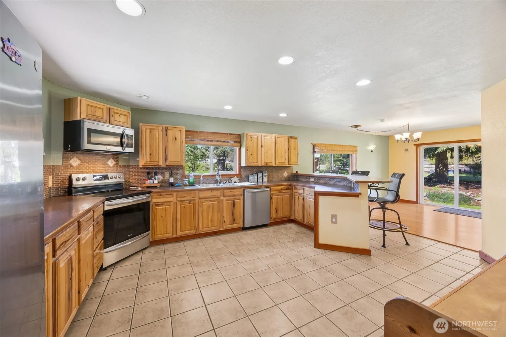 Custom gated home in the heart of Rainier on two parcels = .77 acres! This unique property features multiple detached garage/shops for hobbies or storage, primary bedroom + 2 others on the main floor & a circular driveway for easy access, large garden area + bonus room in lower level. Upstairs there are two nice sized areas for a home office space or play room. The basement is fully finished into a large bonus room with pool table included. Upgrades in this home are a new free standing stove, minisplits, custom log staircase, wood burning stove in detached shop. Enjoy the outdoors here with a beautiful garden space, mature landscaping & room to grow! Located in town with a country feel, this home combines functionality, comfort & character.