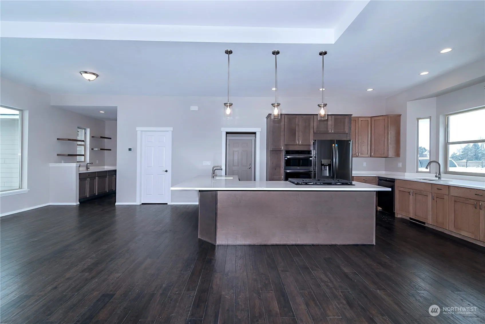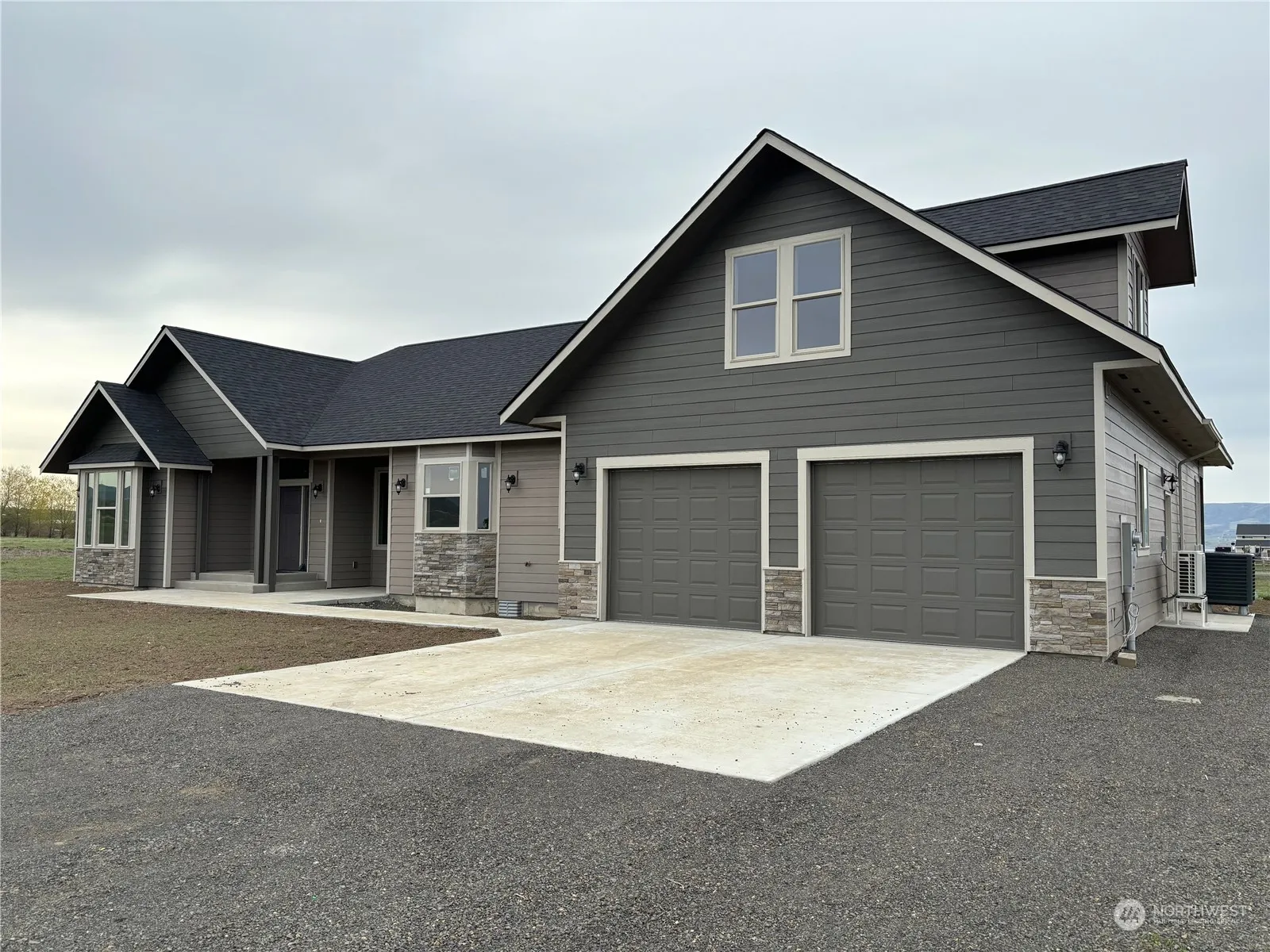 Just completed! NEW BUILD on 2 irrigated acres! Quality built 2,779sqft 3 bed/3 bath house is not only spacious, but has some elements that set it apart from others. Enter the open great room w/ coffered ceiling & enjoy a dynamic kitchen area with granite/butcher blk tops, 3 sinks, custom coffee bar w/ floating shelves, big walk-in pantry, & island for entertaining. Sleep well in the large primary suite with walk-in shower, walk-in closet, & dbl vanity. The 2 generous guest rooms share a full bath. Separate flex room/media/office is upstairs with it’s own 1/2 bath too. Relax outside under the covered patio area with custom T&G soffit & lights. Stone accents, large windows for light, high efficiency systems, SS appliances..just needs you!