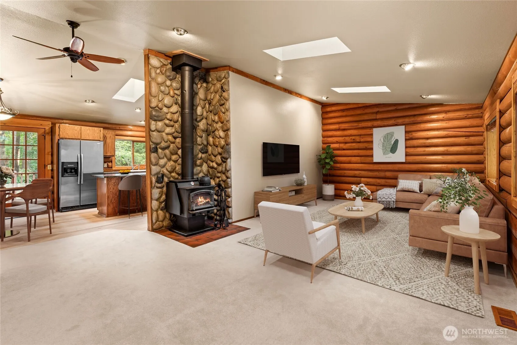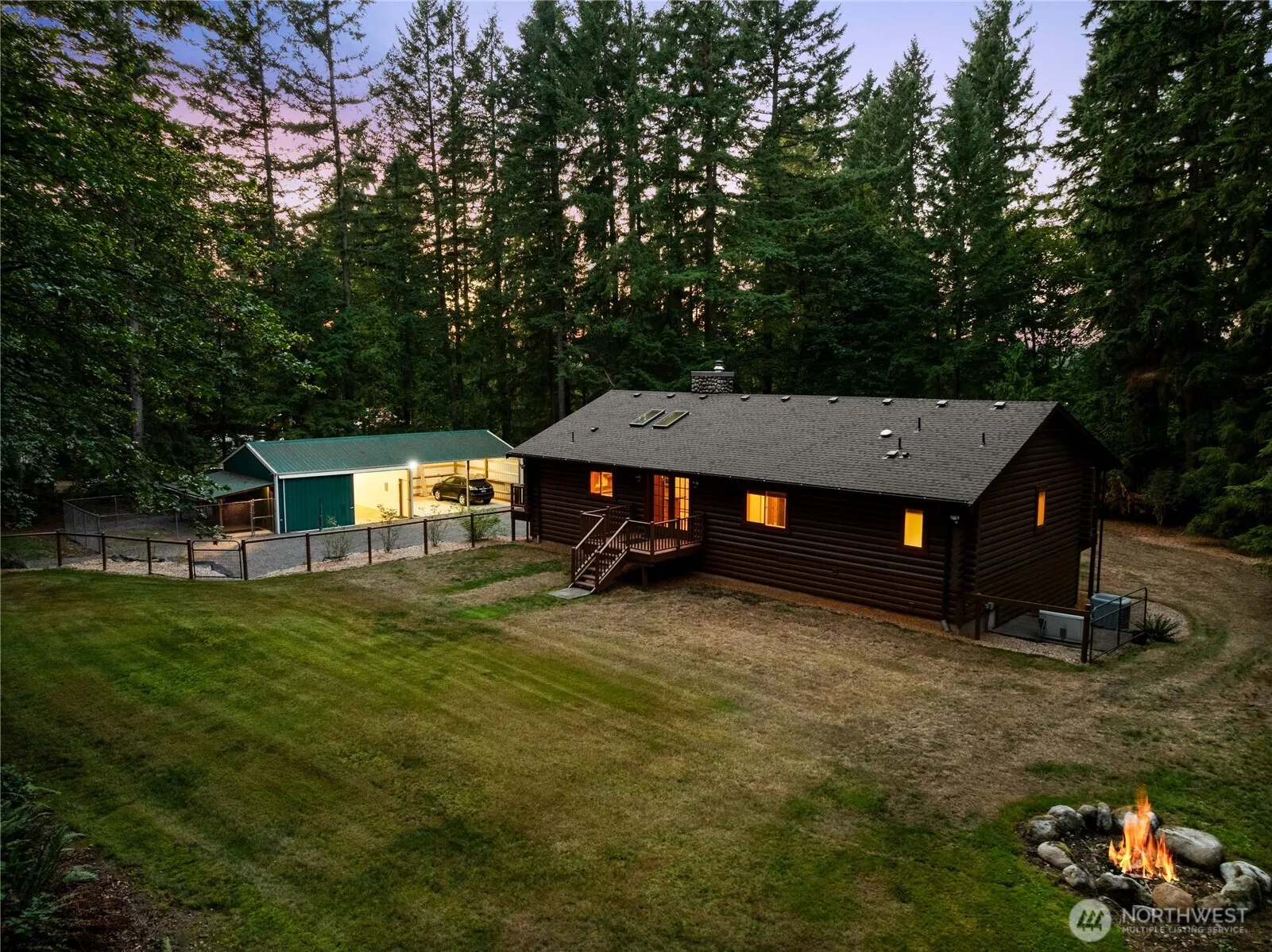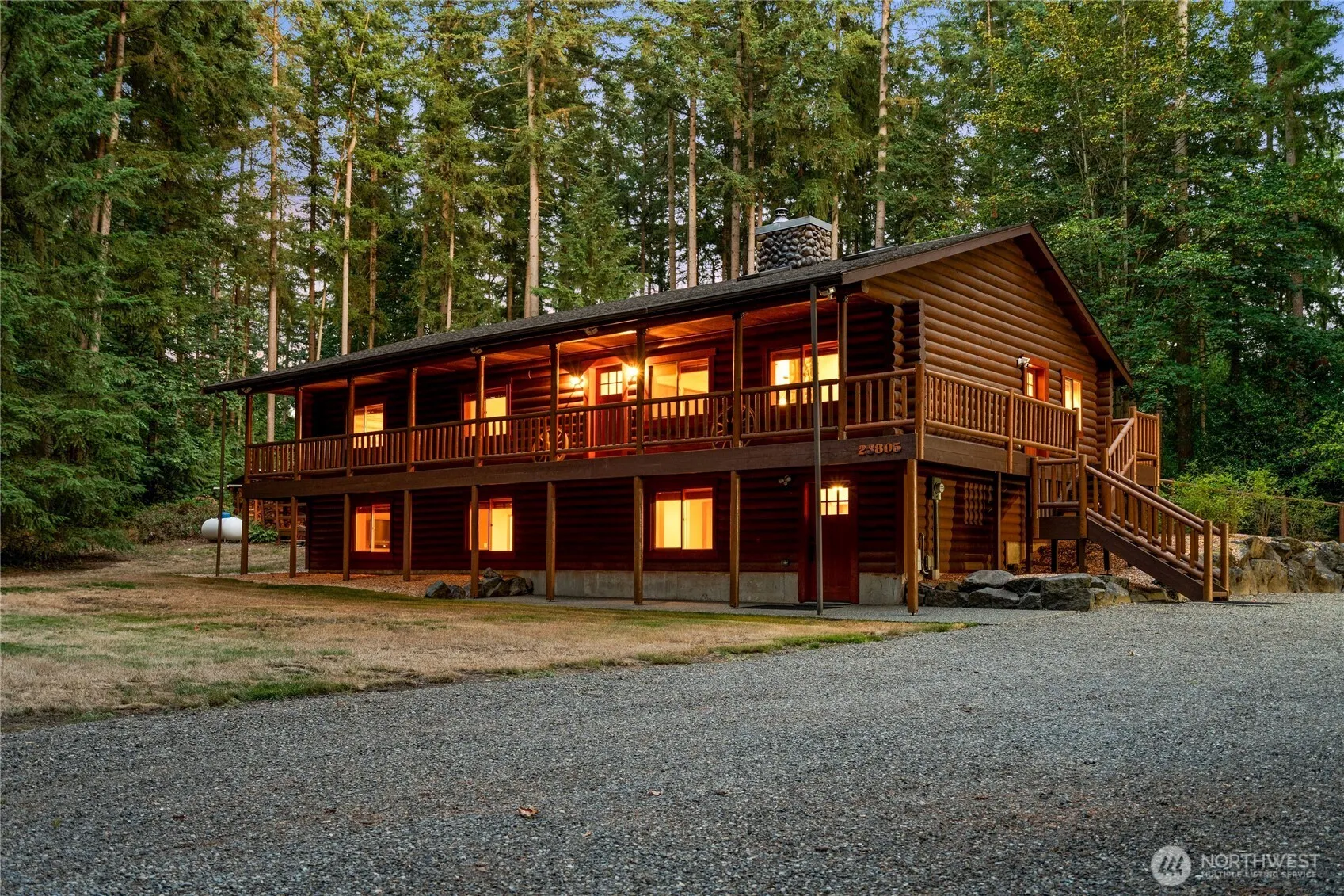 Tranquility abounds on this shy two acre paradise, featuring an immaculate Multi-Gen capable Log Home! Upper floor features vaulted ceilings, woodstove backed with beautiful river rock accent, open-concept kitchen, 3 generous sized bedrooms, 2 ba., & spacious decks. The lower level is all new featuring family rm, large rec rm, 2nd kitchen, 2nd laundry rm, 3/4 bath & Sauna! Property also features standby generator, A/C, walking paths, 24×24 2-car carport, 24×24 insulated & heated workshop w/ 12 ft sliding door, RV pkg, dog kennel, & more.. Enjoy the serenity, truly gorgeous fir trees, and deer that frequent the property! Great location 10 min. NW of downtown Enumclaw, with hiking, biking, fishing, skiing at your back door. Don’t miss out!