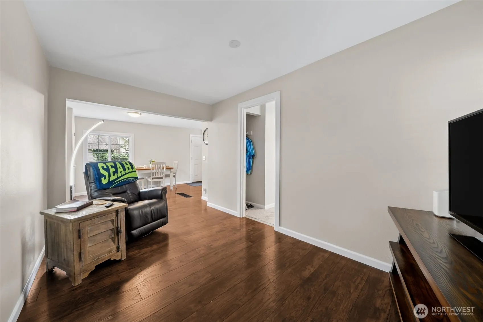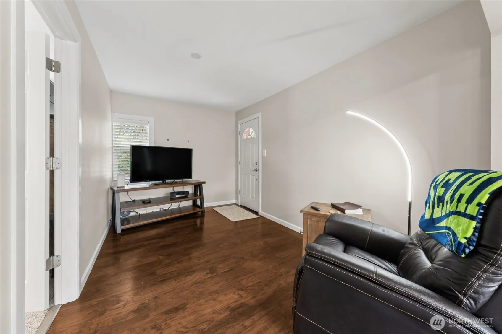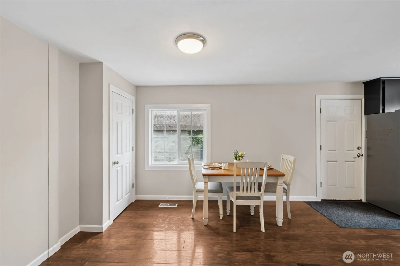 This charming 2-bedroom, 2-bath home is beautifully maintained and move-in ready. The front porch opens into a cozy living room that connects to a spacious dining area and an updated kitchen. The primary bedroom features a 3/4 bath with a tiled shower and new carpet. The second bedroom, also with new carpet, is conveniently located near the second updated bathroom. An upstairs bonus room offers the potential for a third bedroom. The utility room leads to a covered back patio, utility shed, and backyard. The fully fenced property has ample space for gardening and more. A stunning over 90-year-old Monkey Tail tree and mature Rhododendron add character. Plenty of front parking. Located near park, and vibrant downtown Enumclaw.