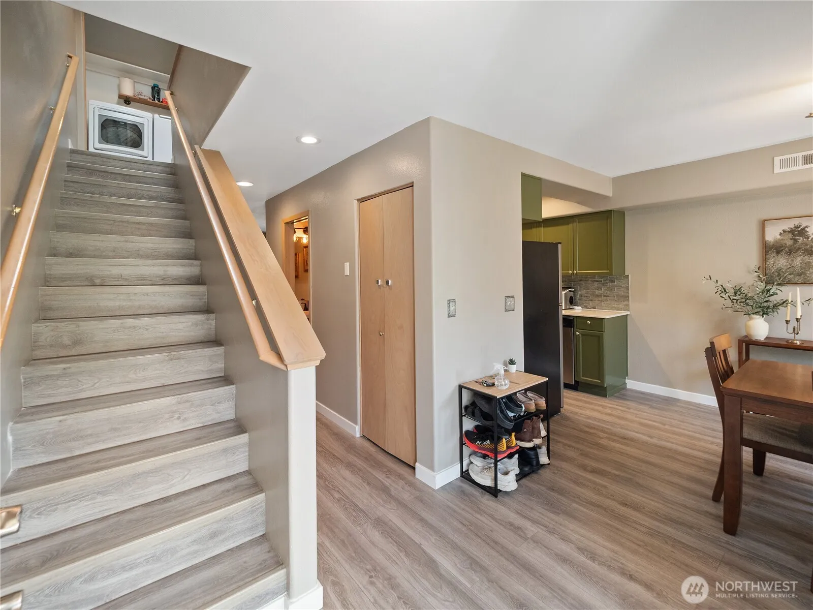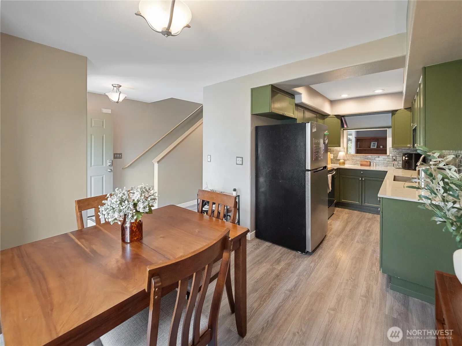 Welcome to Foothills Ridge in Enumclaw! Nicely updated 2-bedroom, 1.5 bath, 1,085SF home boasts a pristine interior and exterior, offering ample storage space and its own private backyard and patio. Both bedrooms feature huge walk-in closets, LVP flooring & one w/ a slider to the balcony & lockable storage closet. Spacious living room w/ gas fireplace insert & LVP flooring. Stainless appliances, glass tile backsplash & slab quartz counters in the kitchen. Full bath w/ dual sink vanity, tile floors & tile shower surround. Newer gas furnace & water heater. 1-car carport parking assigned w/ storage. Nestled near skiing, hiking trails, & open spaces, Enumclaw provides a charming, sparse suburban feel w/ numerous, shops, parks, and restaurants.