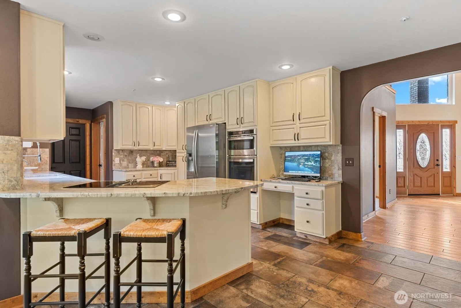 Mission Ridge to the Enchantments – and across the Columbia River, Cascade Mountains, and city sky line views from this secluded 4 bedroom custom home is truly unmatched. The luxurious primary suite is a private retreat, showcasing floor to -ceiling windows, dual vanities, and spa-like soaking tub. The spacious open concept kitchen featuring granite countertops, abundant storage, custom woodwork, flooring, and a new wall oven. Entertain with ease in the elegant formal tray ceiling dining room. Private driveway with plenty of parking. a beautifully landscaped yard complete with a hot tub, and large patio cedar arbor the home blends elegance, comfort, and lifestyle in a setting that is as rare as it is breathtaking.