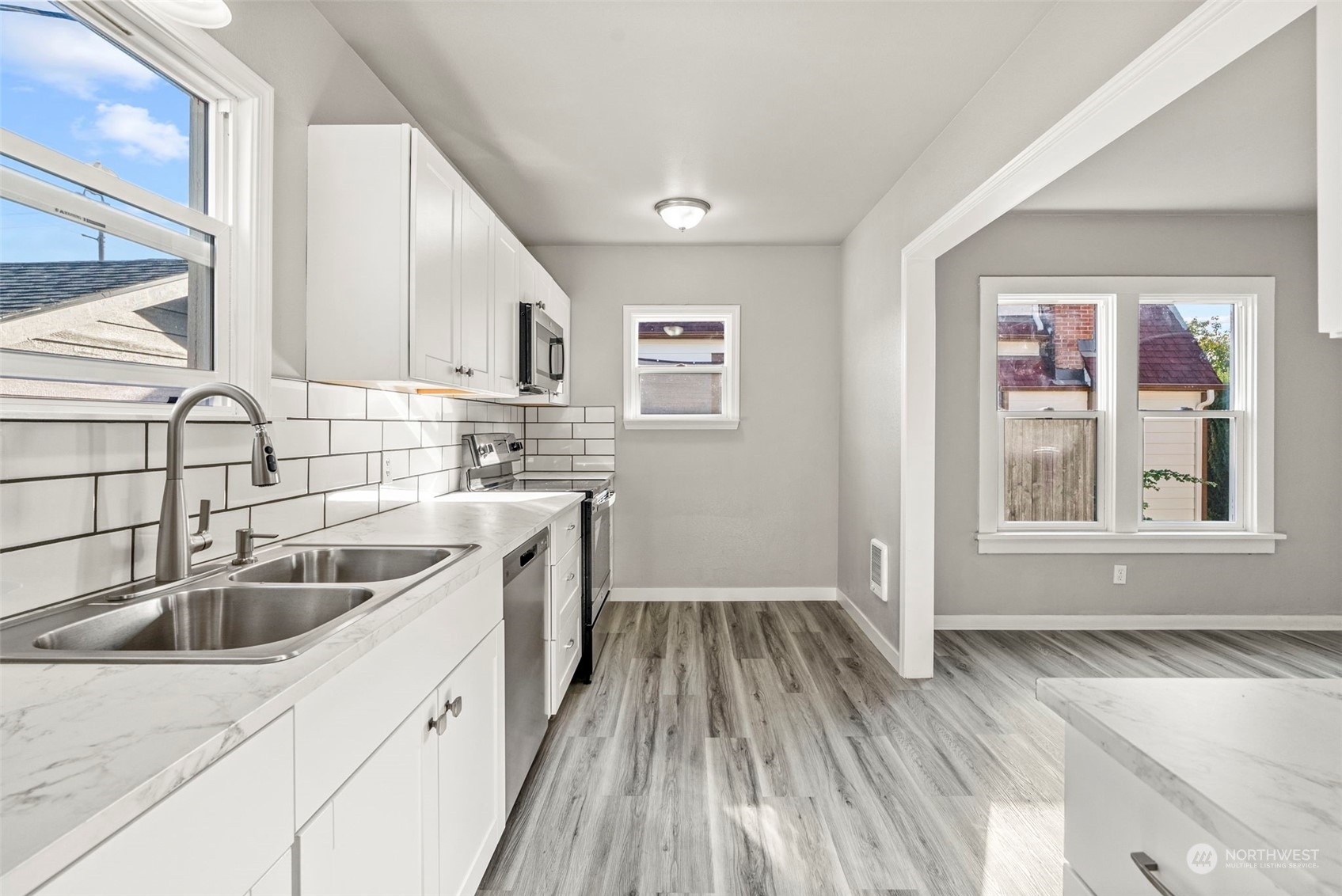 Don’t miss this spacious updated home in the Olympic neighborhood! This 3 bed, 1 bath, 1414 sq ft home has a living room, kitchen w/ adjacent dining room, laundry room, and 957 sq ft unfinished basement. Updates include new interior & exterior paint, flooring, cabinets, counters, stainless appliances, and more. Also has a detached 1-car garage and fenced backyard. This home is fresh, clean, and ready to move in!