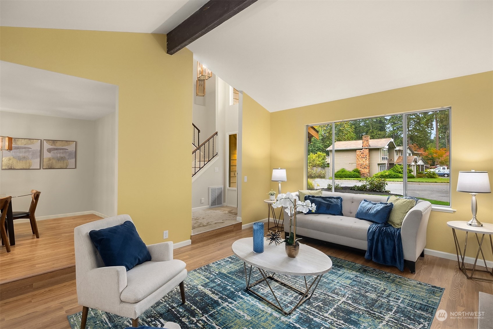 Updated Mid-Century Modern 2-story on a fenced flat lot on a private cul-de-sac dead end street. Vaulted ceiling living room with expansive windows and fireplace. Updated kitchen with stainless steel appliances, stainless sink & new flooring. Inviting Great room with stikwood style backdrop to the cozy fireplace. Updated bathrooms, laminate and carpet flooring, New Exterior and Interior Paint, LED lighting, tankless water heater, vacuum system and more. Two car garage with access stairs to above loft/storage area. New roof 2017. Detached 200 sq foot outbuilding with elevated wood frame and full length 2X4 Joists, a world of possibilities for this extra space. Great location! No HOA dues. Minutes to elementary, Costco and Mill Creek.