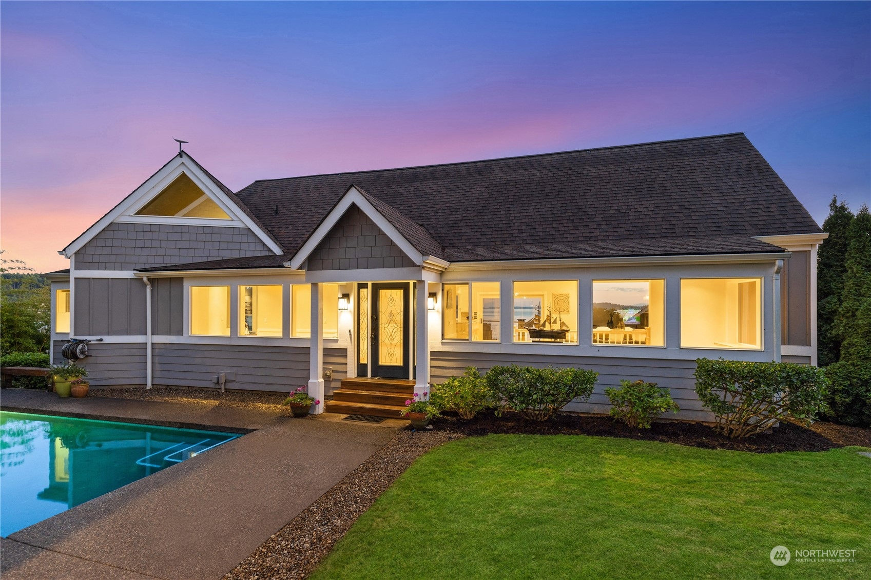 Unparalleled living at the mouth of Rocky Bay with 90ft of low bank waterfront and breathtaking scenery from all areas of home! South facing views bring constant light to this nearly half acre. Home features TWO primary bedrooms, one on the main & one downstairs. Soaring ceilings on the main welcome you in w/ captivating real wood floors, large kitchen, breakfast nook & outdoor deck. Downstairs you’ll have an extra bonus room and an added bathroom. The perfect weekend getaway, as the home is completely dialed in for hosting multiple people. Featuring a detached guest home, fitted w/ own kitchen & three quarter bath + HEATED POOL and in Ground Spa, you’ll have the perfect entertaining spot. Truly too many good things to say about this home!