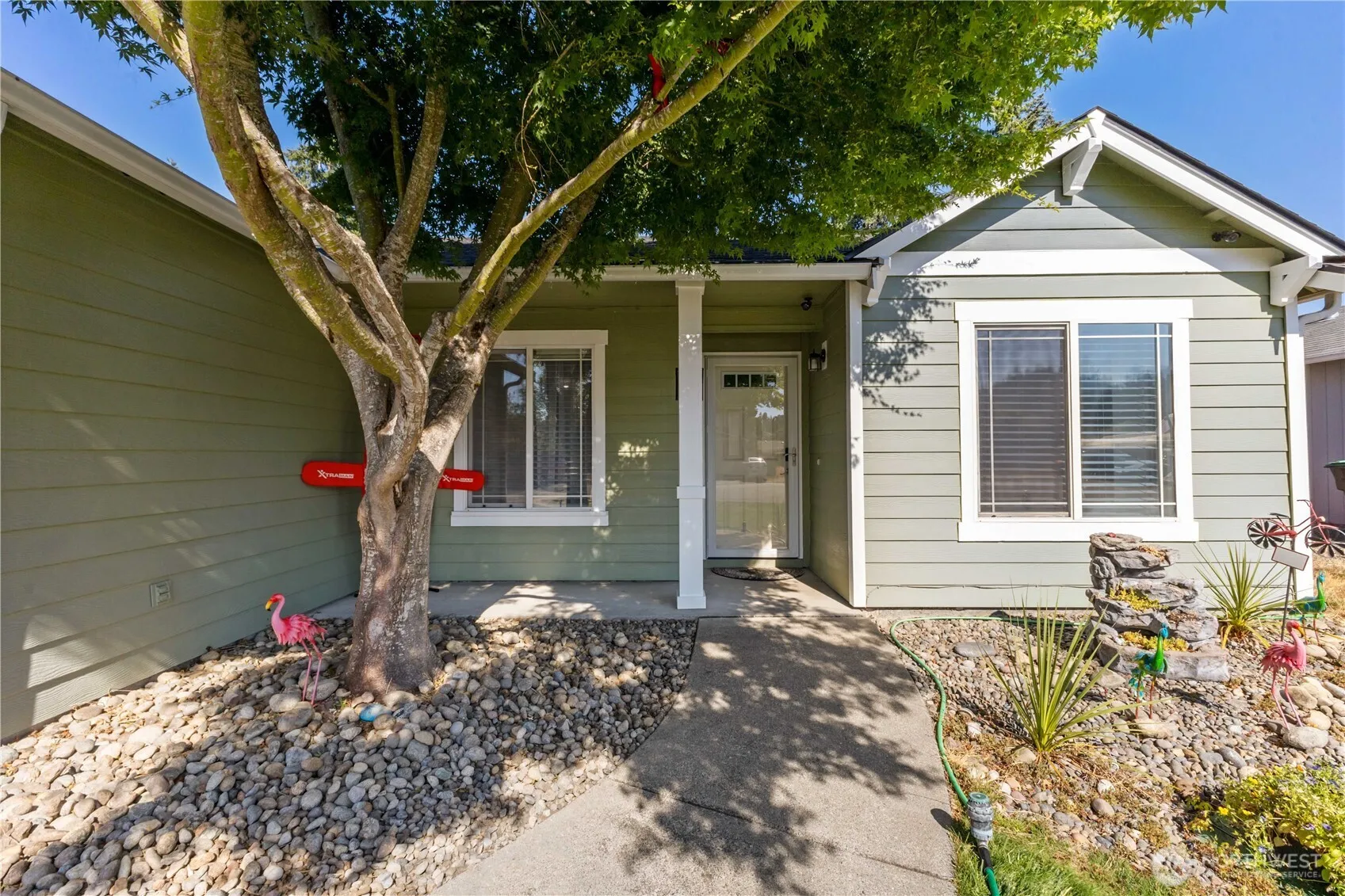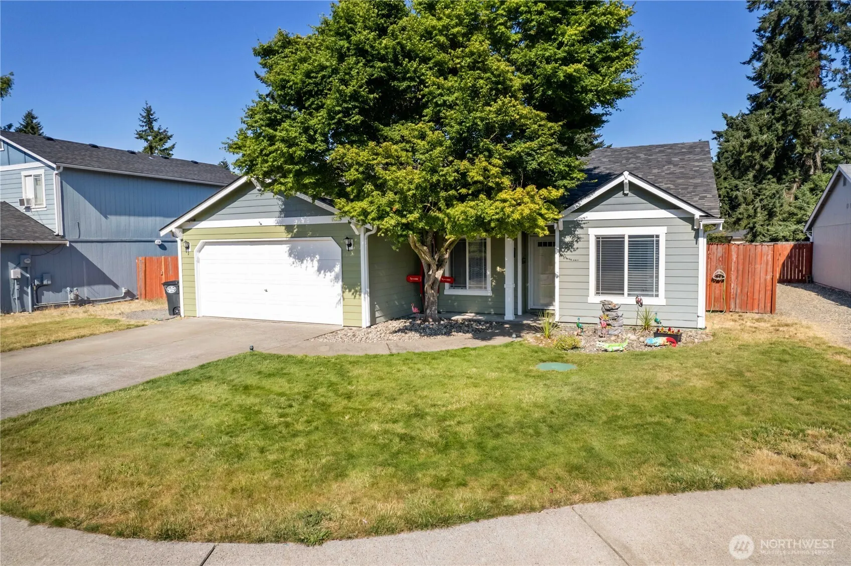Charming 4-bedroom rambler featuring vaulted ceilings, 2 full bathrooms, and a spacious, open concept layout ideal for comfortable living and entertainment. The kitchen is open to the living and dining rooms and has tons of cabinets and counter space. The primary bedroom has an ensuite bathroom and a walk-in closet. The newer roof and updates throughout make this home a must-see. This wonderful home features a large, fully fenced yard and includes an outbuilding that is set up as an amazing home office or game room. Steps away from an elementary school and a convenient location near shopping, dining, JBLM, and easy access to I-5 for commuting.