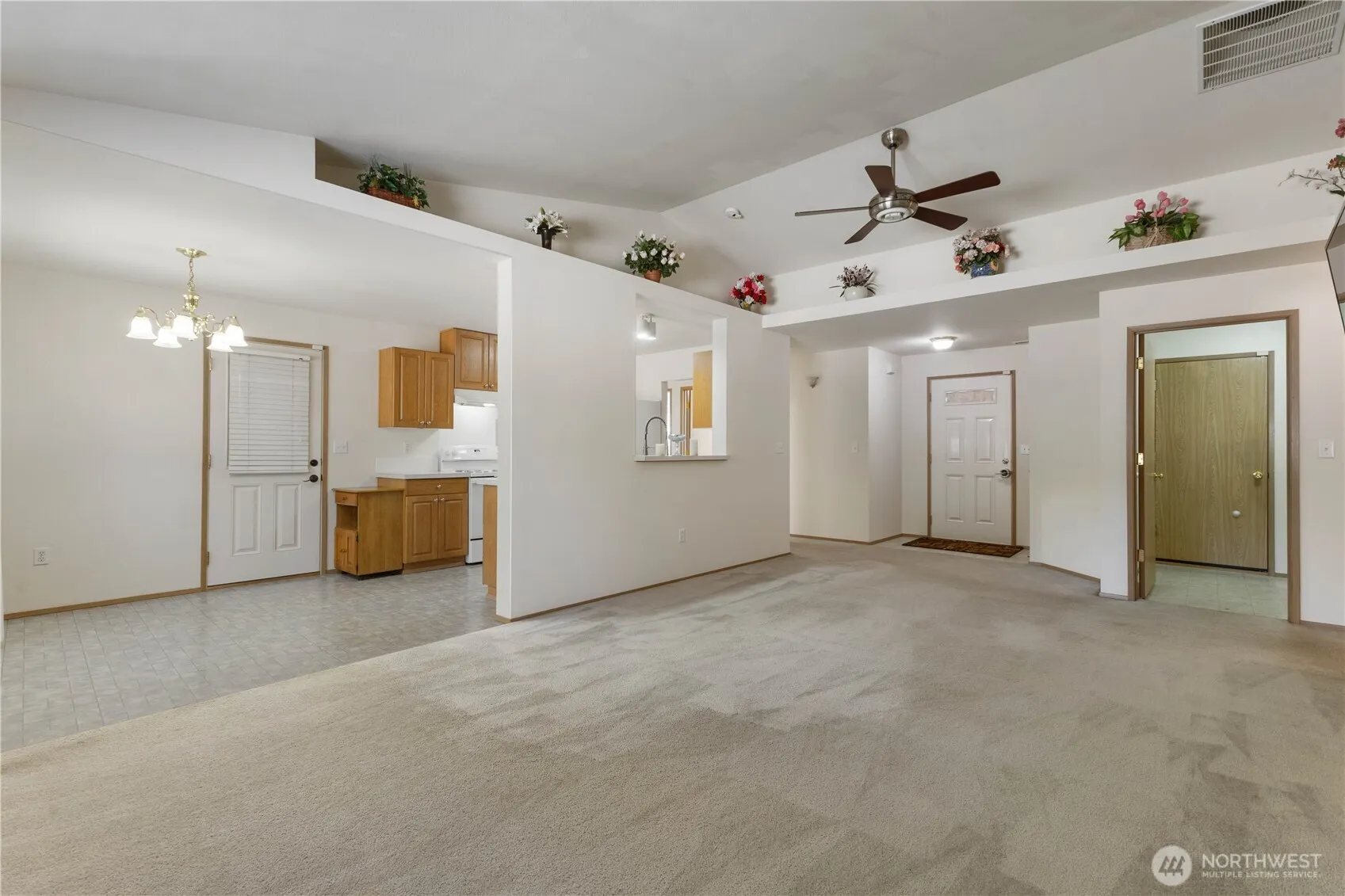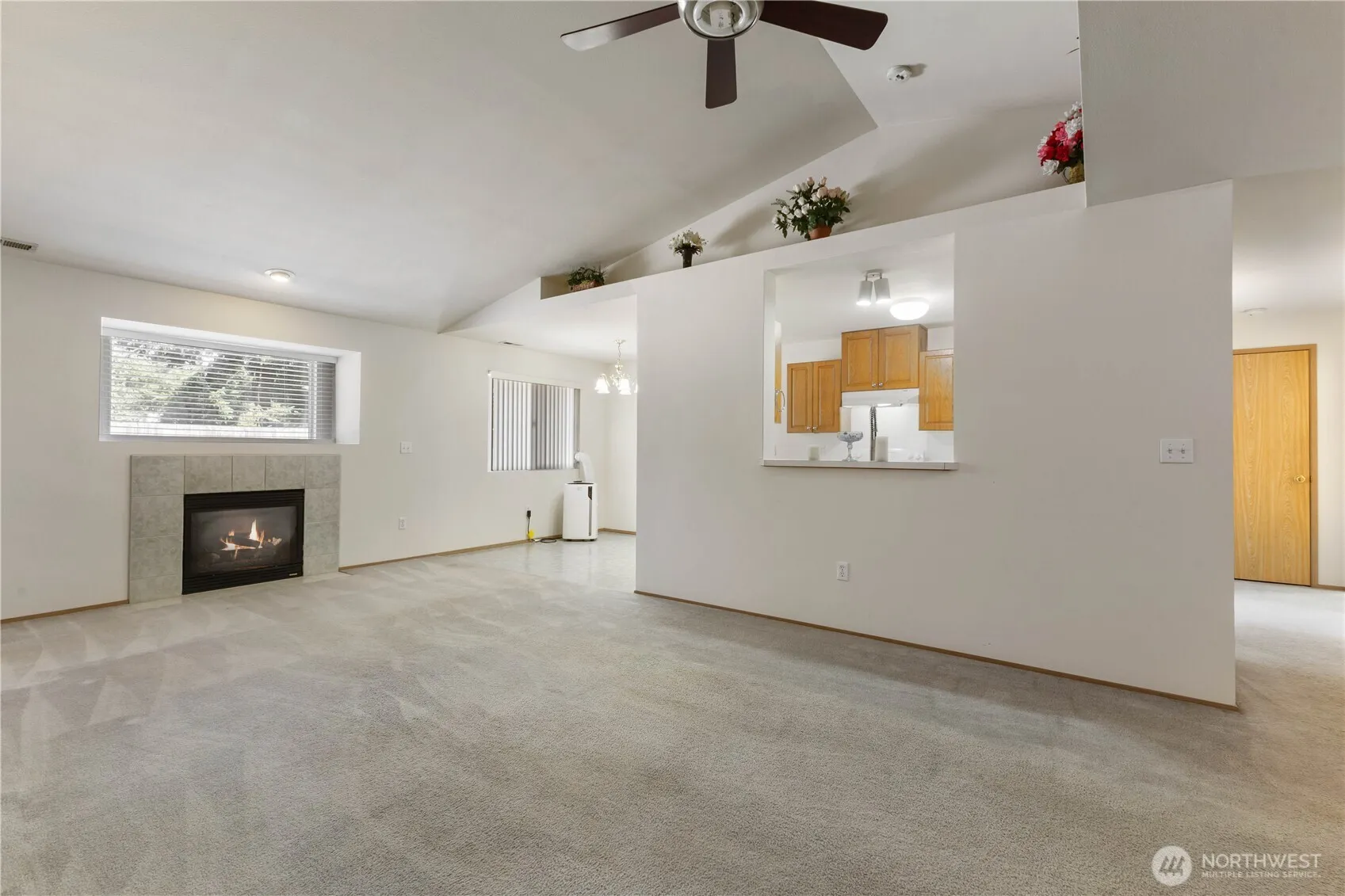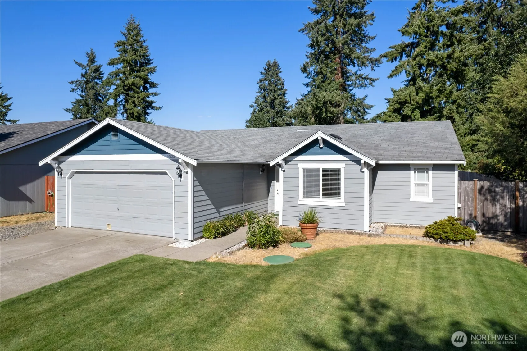 Meticulously maintained single-story home situated in a quaint neighborhood. This move-in-ready three-bedroom, two bathroom home features vaulted ceilings, open concept living, and a freshly painted interior. The large primary bedroom has an ensuite bathroom and a generous walk-in closet. Additional space off of the dining room can be used as a home office. All appliances stay, including the washer and dryer. Steps away from an elementary school and an easy commute to JBLM, local shopping, and entertainment.