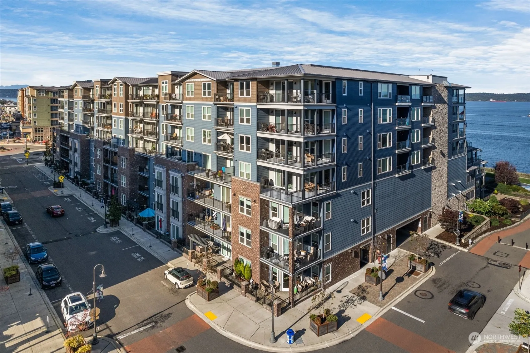 Welcome to this sunny 2BD, 1.75BA corner condo in the coveted Point Ruston community. With a spacious interior & partial view of the Sound, this home is a true gem. The open floor plan is enhanced by an abundance of natural light, creating an inviting & airy atmosphere. Kitchen features SS appliances & quartz countertops. Enjoy cozy evenings by the gas fireplace in the living area, perfect for relaxation & entertaining. Enjoy views of the village and SOUND from the wrap-around balcony equipped with gas, power, & water. Point Ruston has an array of amenities just steps away. Shopping, movies, great hiking, delicious restaurants & fun activities are an elevator ride away. Make friends, enjoy life by making this TOP FLOOR residence your own.