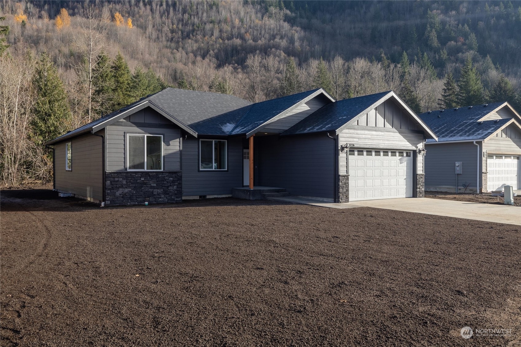 BRAND NEW 3 bed, 2 bath home with beautiful covered back patio. Features include stainless appliances, vaulted ceilings, quartz counter tops, tile back-splash and heat pump so you get central air conditioning. Stunning peninsula style kitchen with quality cabinets including dovetailed soft close drawers. The oversized 2 car garage is extra deep on one side to fit a bigger vehicle/workshop area. Garage is wired for your electric vehicle & house also is wired for a generator. Premium lot backs to the mountain so no one builds behind you. Enjoy living in a brand new gated development with stunning mountain views! Compare our homes to other new homes on the market. Only about a 30 minute drive to Bellingham. Home is ready for move in!