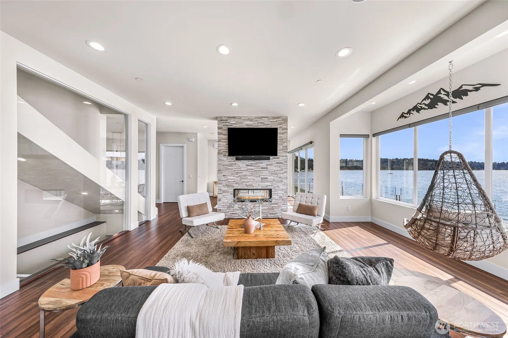 Discover unparalleled luxury in this stunning 2019 waterfront masterpiece in exclusive Shorewood on the Sound. This magnificent gated estate boasts 62 feet of pristine low-bank shoreline with boat ramp and breathtaking Puget Sound vistas. Seamlessly blending sophisticated indoor-outdoor living via NanaWall systems, the open design showcases a chef’s kitchen with premium Bluestar range, dual dishwashers, and double sinks. Luxurious amenities include heated bathroom floors, soundproofed bedrooms/office, individual climate controls, and elevator-ready design. The extended-height garage accommodates two cars with EV charging, plus 2,000+ sq ft storage. Experience refined coastal elegance in this rare 12-home enclave.