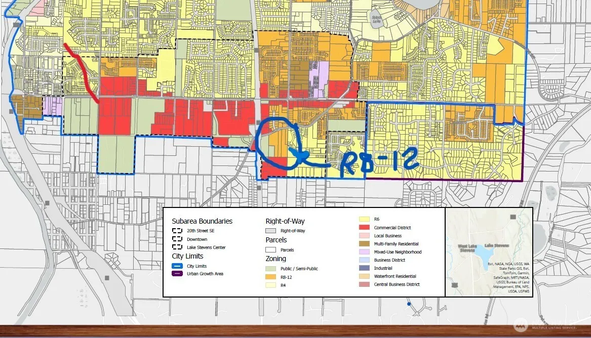 Exceptional Investment Opportunity in the thriving Community of Lake Stevens. Right off HWY 9, close to Costco and Target. This listing includes 3 homes on 10.61 acres of high-density residential land zoned R8-12. The other addresses are 9816 & 9804 S Lake Stevens Rd, with Parcel Numbers 00457100004801 & 00457100004803, respectively. Both are 2BR and 1 bath homes with 2-car garages each. See our other listing (LS# 2425835) of 11.36 acres of vacant land, which is zoned commercial mixed-use. This adjoining commercial vacant land is to be sold in conjunction with this listing, making a total of 21.97 acres to work with. A developers Dream!
