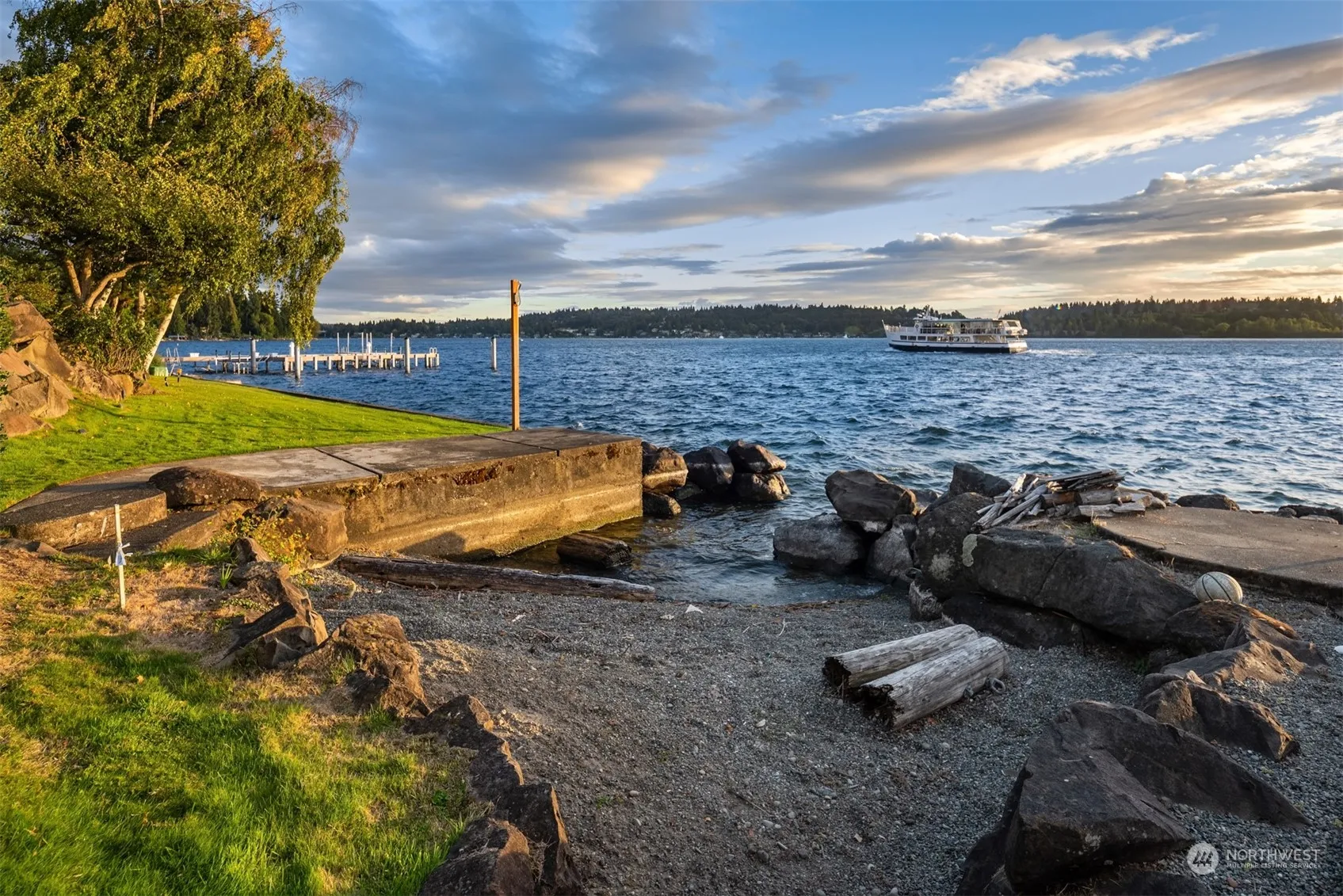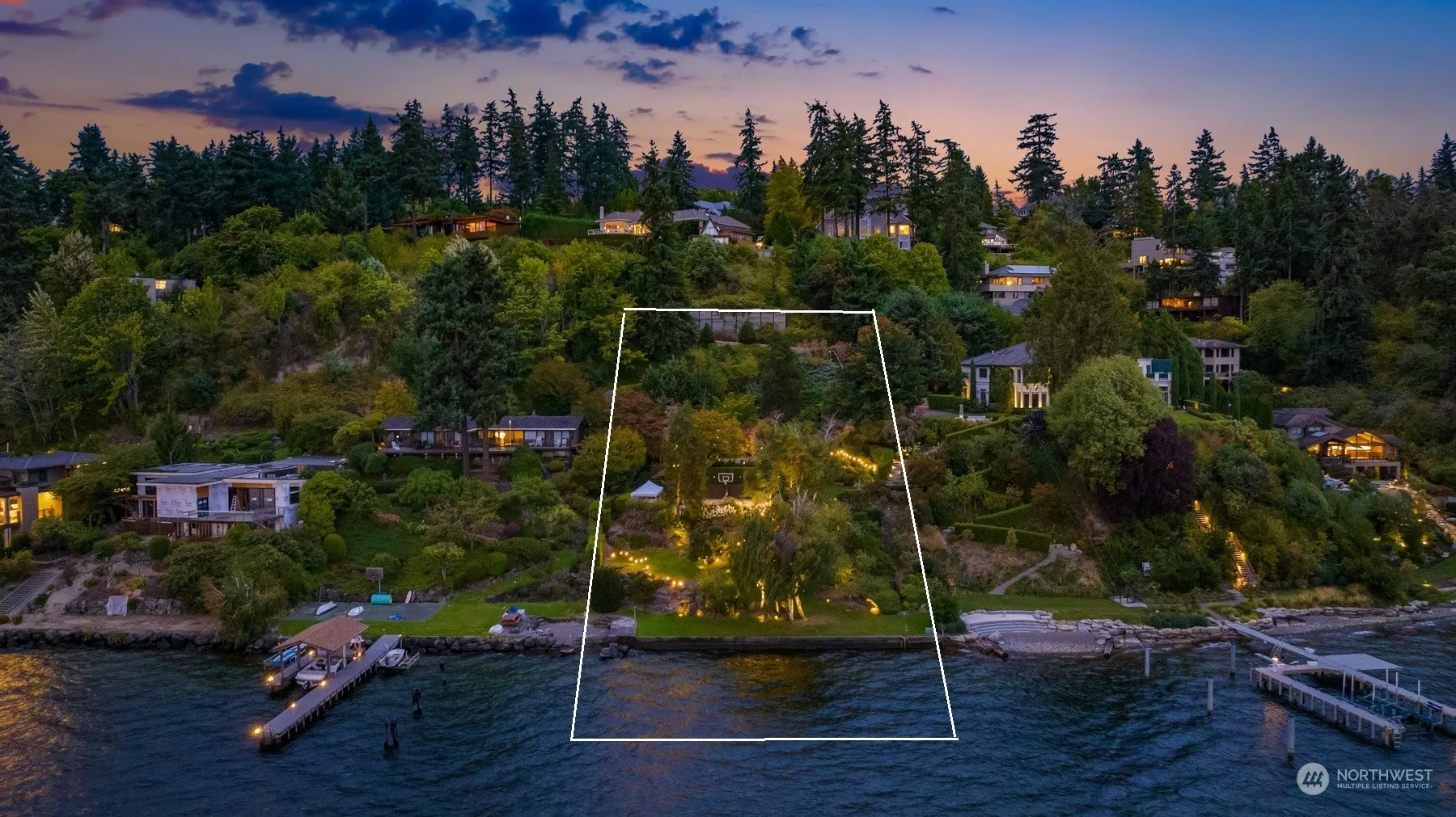 Build your amazing west-facing waterfront estate on Shoreland Drive. Concept by McCullough Architects. This private, gated estate is ready for your summer use with wonderful landscaping, pickle ball court and carport with additional space to use while you do the design process and planning. Shy half-acre with 110 feet of lakefront. Incredible, sweeping views of Lake Washington, the Olympics and Seattle skyline. The view is exceptionally rare, since only a few locations in all of West Bellevue are positioned to have this view. Gorgeous sunsets and fabulous natural light. This site is ready for you to make your dreams a reality. The one you have been waiting for!