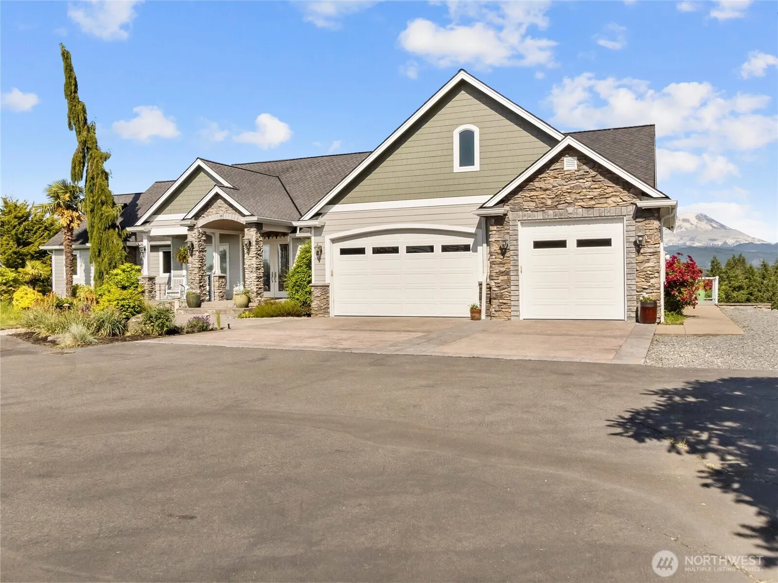 Live above it all at Kinsman Court a gated community with luxurious estates & unmatched panoramic views of Mt. Rainier, the Olympics & Cascades. This 4,500+ sq ft home on nearly 10 acres features 3 bedrooms, an office (potential 4th bed), 3.75 baths, and a main floor primary suite that feels like a private retreat with a fireplace, jetted tub, steam shower & mountain vistas. Chef’s kitchen includes granite slab, high-end built in appliances, radiant-heated travertine & hardwood floors. Other features include a theater room, dual laundry on main & lower level, A/C, remote blinds, built-in vacuum, RV hookups & generator equipped w/auto transfer. Professionally landscaped with water features, hot tub & full sprinkler system. Luxury awaits!
