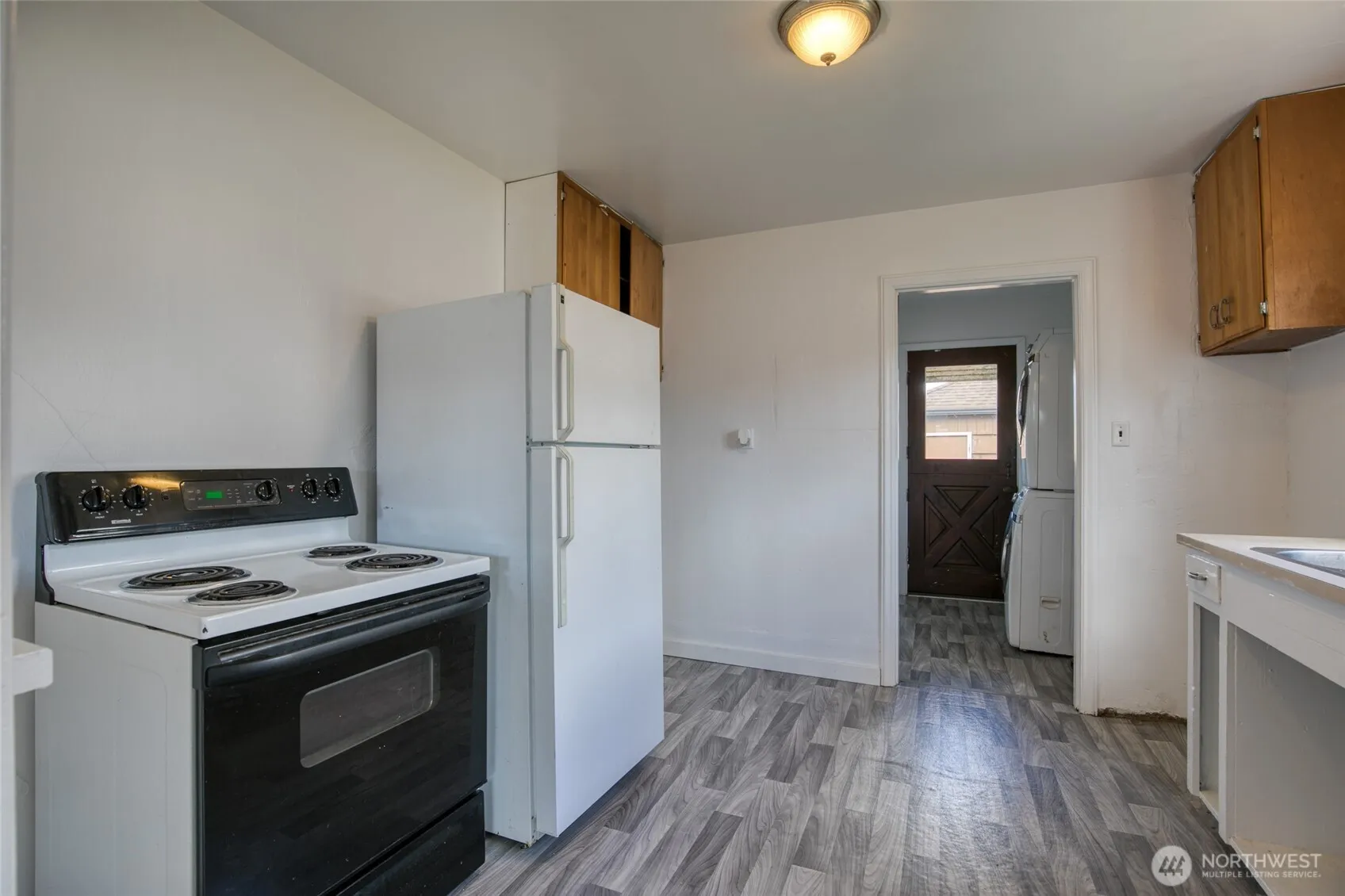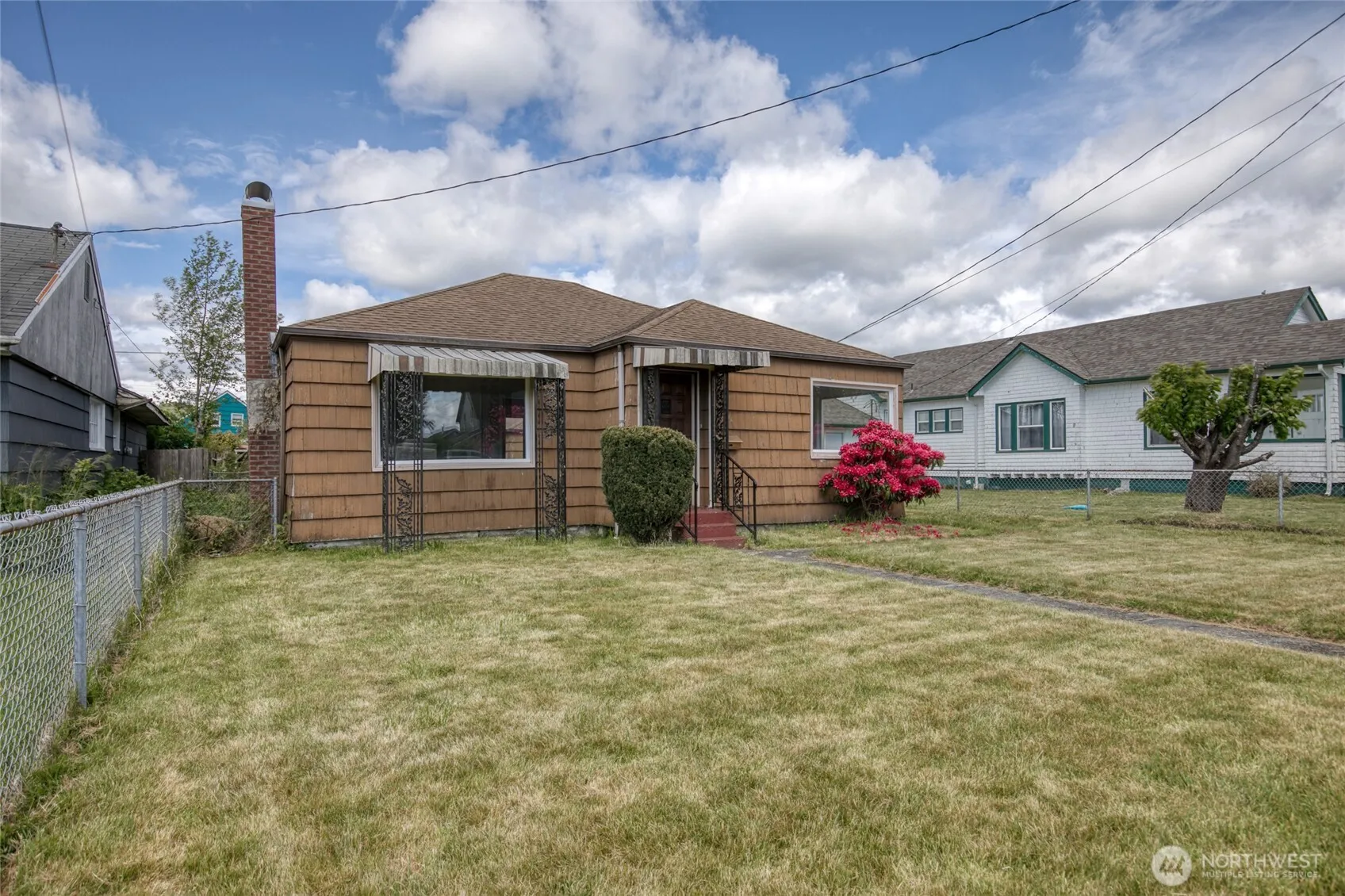 This very reasonably priced Three Bedroom, One Bath, Single Story home on Morgan Street in Aberdeen is available for sale. The lot is fully fenced with an Oversized, Detached, Single Car Garage. A Cement Patio is situated between the two buildings. The roof is approximately 10 – 15 years old on both buildings. The interior has been freshly painted. Original Hardwood Flooring in the living and dining rooms. New Laminate in the hall, kitchen, bath and bedrooms. The bathroom has been freshened up. New baseboard heaters have been installed. Ceiling fans cool the home on warm days. Some newer double pane windows. The Laundry Room is equipped with a washer and dryer. A beautiful japanese flowering cherry tree enhances the back yard.