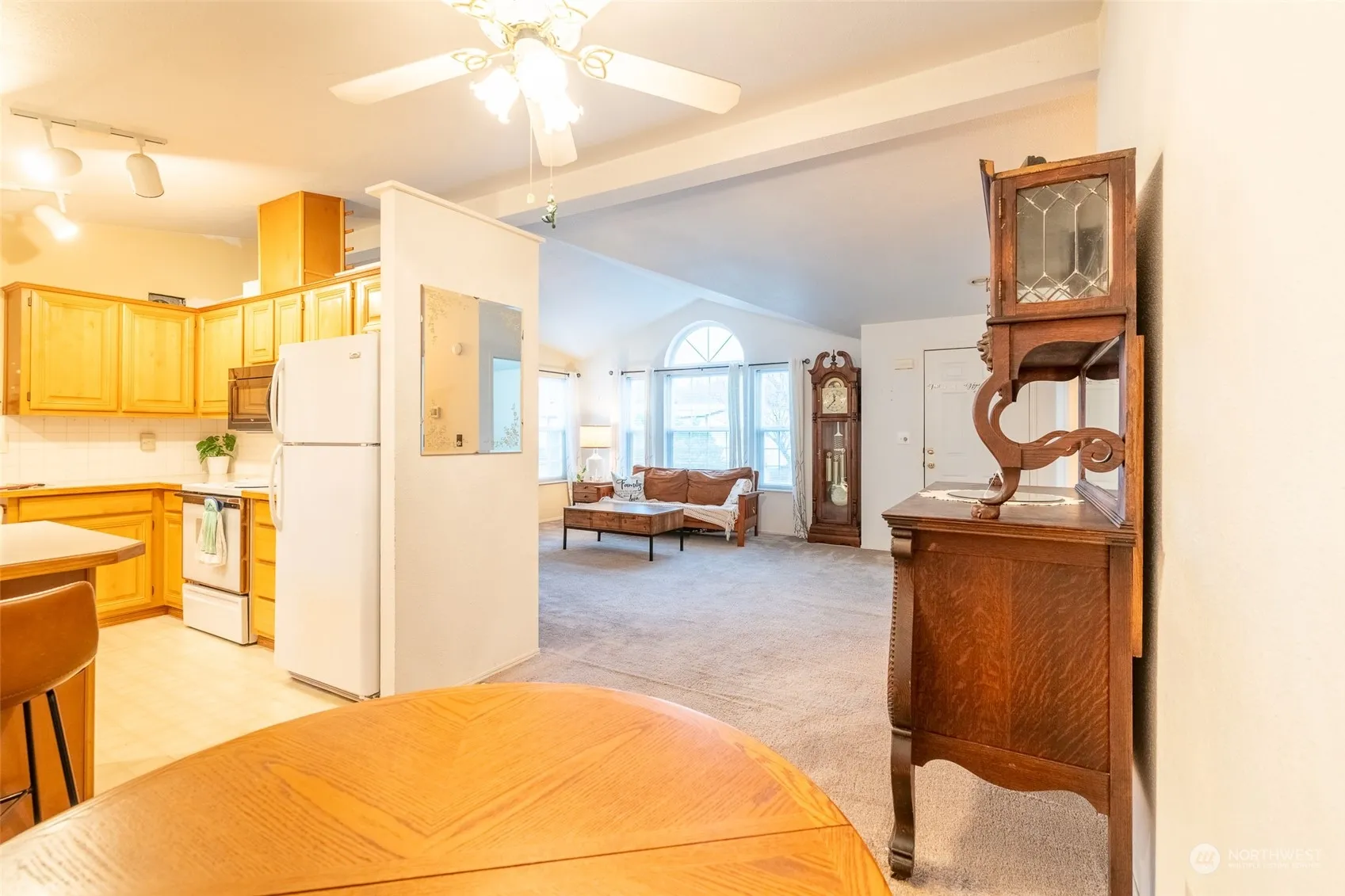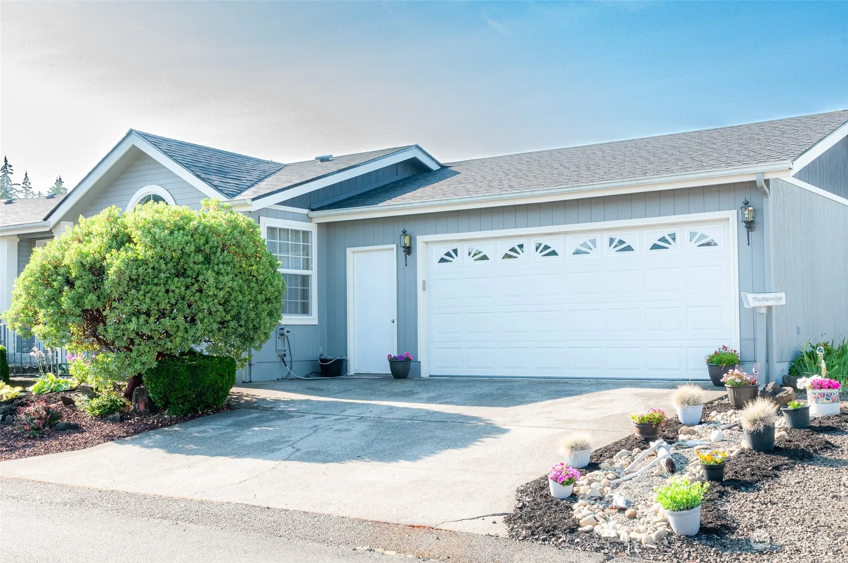 Beautiful, well maintained 2 bedroom/2 bathroom home in this 55+ community. Welcome to Christmas Village! Huge primary bedroom w/ walk in closet, en-suite bath w/ walk-in shower. Den/office with double french doors. Vaulted ceilings in every room. Kitchen peninsula with seating. Relax in the private sun room. Plenty of space for entertaining. You will love the attached 576 SF-2 car garage with pull down ladder to spacious above garage storage. Additional parking on side of home. Heat pump-A/C. Backyard storage shed. Space rent is only $725 per month. Close to shopping and services. Close to Mason General Hospital. Close to Hood Canal fishing, shrimping. This charming home is ready for you to move in! New roof just installed Feb 2024!!