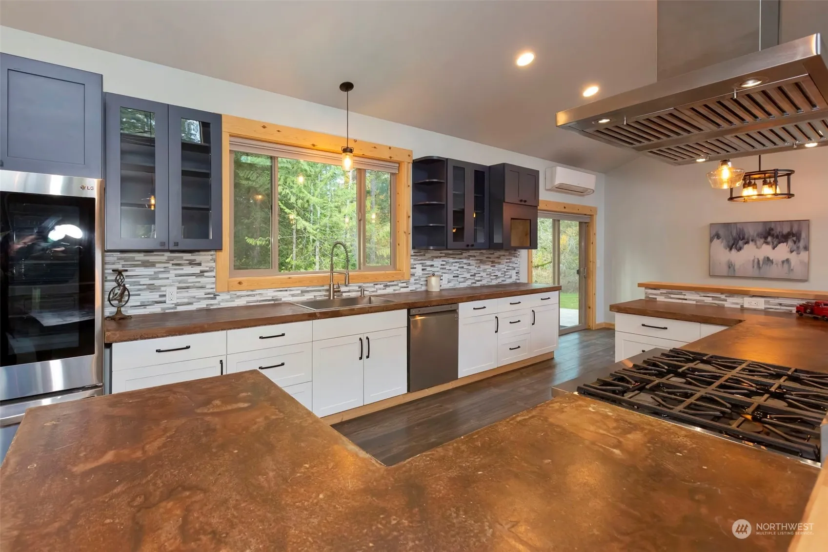 PRICE REDUCTION! Privately nestled on 4+ acres, this gorgeous 3 bed/2 bath home (with 2 additional flex rooms) was impeccably finished in 2023 to check all the boxes. Natural light filled open floor plan, vaulted ceilings, chef’s kitchen & great room-perfect for entertaining & functionality. Primary bedroom possible on either side of the home-you decide! Staircase pictured leads to 1 of 2 flex rooms-ideal for home office or game room. Outdoor entertainment possible year round under expansive concrete stamped covered patio. Outbuilding also flexible for home office, yoga studio or workshop. Rec vehicles?…not a problem here! Develop lot further as your hobbies see fit! Your NEW home awaits!