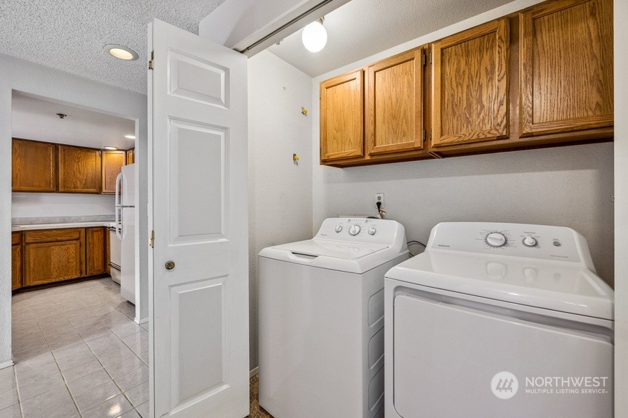 Spacious 2 bedroom condo in terrific location with easy entry, open floor plan with lots of natural light. Enjoy the fireplace or the sunset from the patio. New washer and dryer and water heater, all kitchen appliances stay. After exercising in the fitness center or tennis courts, walk to the cabana and enjoy the sauna or new pool. This unit offers 2 assigned parking spaces one covered. Quiet Community convenient to Westfield Mall, I-5, I-405, and Hwy 167 airport, link rail and transit – which you will LOVE. Special assessment for upcoming new siding project has been paid in full by the seller.