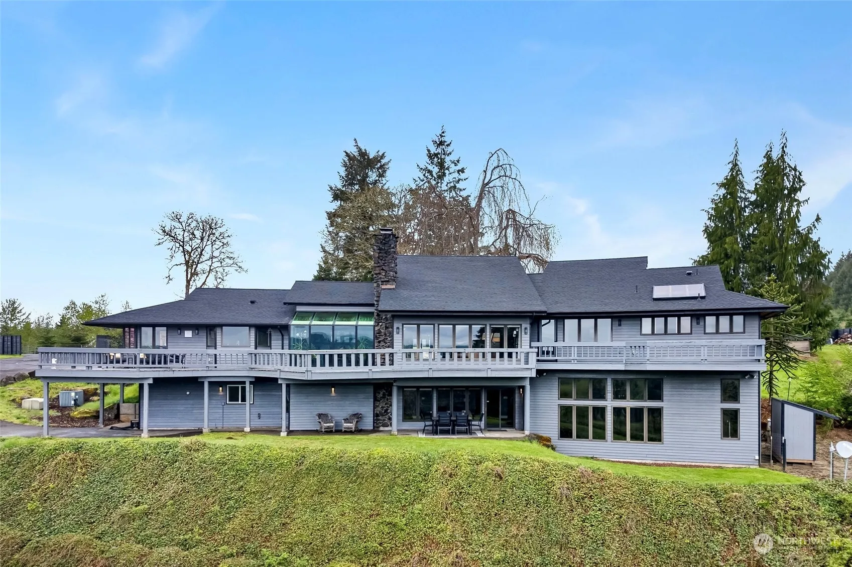 This Chehalis estate has been beautifully restored & is ready for the next chapter in its rich history. The expansive 5,564 sq ft residence sits high above the Chehalis River Valley on a serene 4.23 acres, providing endless territorial views of the valley & Mt. Rainier. Striking lines & warm, rustic natural textures bring the Pacific Northwest Contemporary architecture of this custom home to life. Cedar & stone blend seamlessly with the clean modern design. Abundant possibilities exist for this property – full time residence, event venue, private retreat? Dual primary suites, second kitchen, one of a kind rec room, solarium style dining room, & even a wood elevator! Owner financing available, inquire with your broker for potential terms.