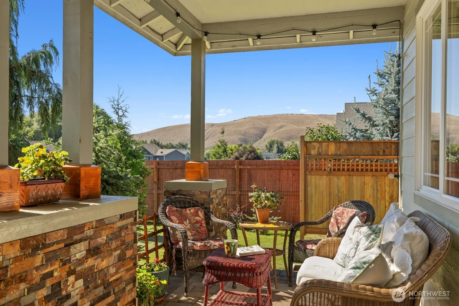Located in the highly desirable Westside Sagebrook development, this immaculately maintained rambler sits on a rare 1-acre parcel & offers breathtaking 360-degree views. With 1,971 sq ft of living space, 3 beds, 2 full baths, & plus a den/office ideal for remote work. The heart of the home is the beautiful kitchen, complete with custom cabinetry, SS appliances, a large island with bar seating, & plenty of counter space for cooking & entertaining. Step outside to enjoy the mature landscaping, fenced pasture, & charming covered porches that invite you to relax & take in the scenery. The spa-inspired primary suite offers a peaceful retreat with double sinks, a tiled walk-in shower, soaking tub, large walk-in closet, & private patio access.