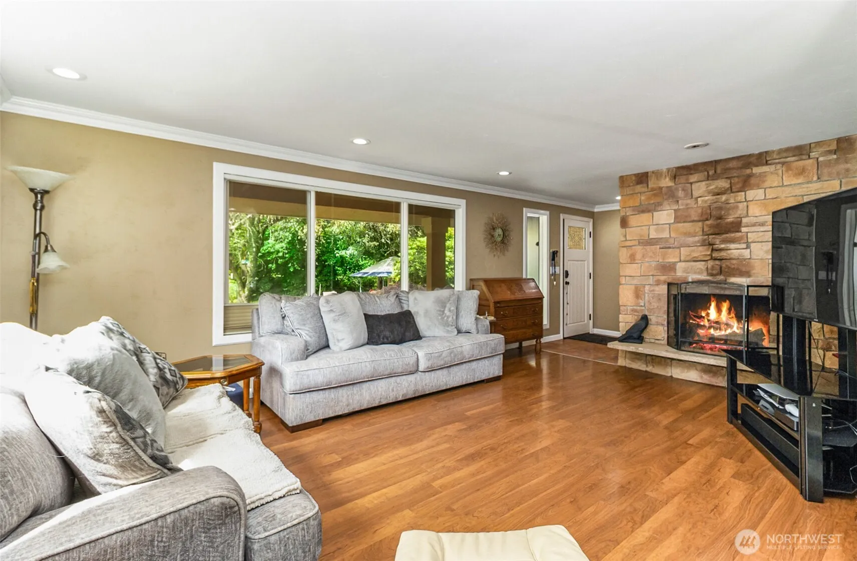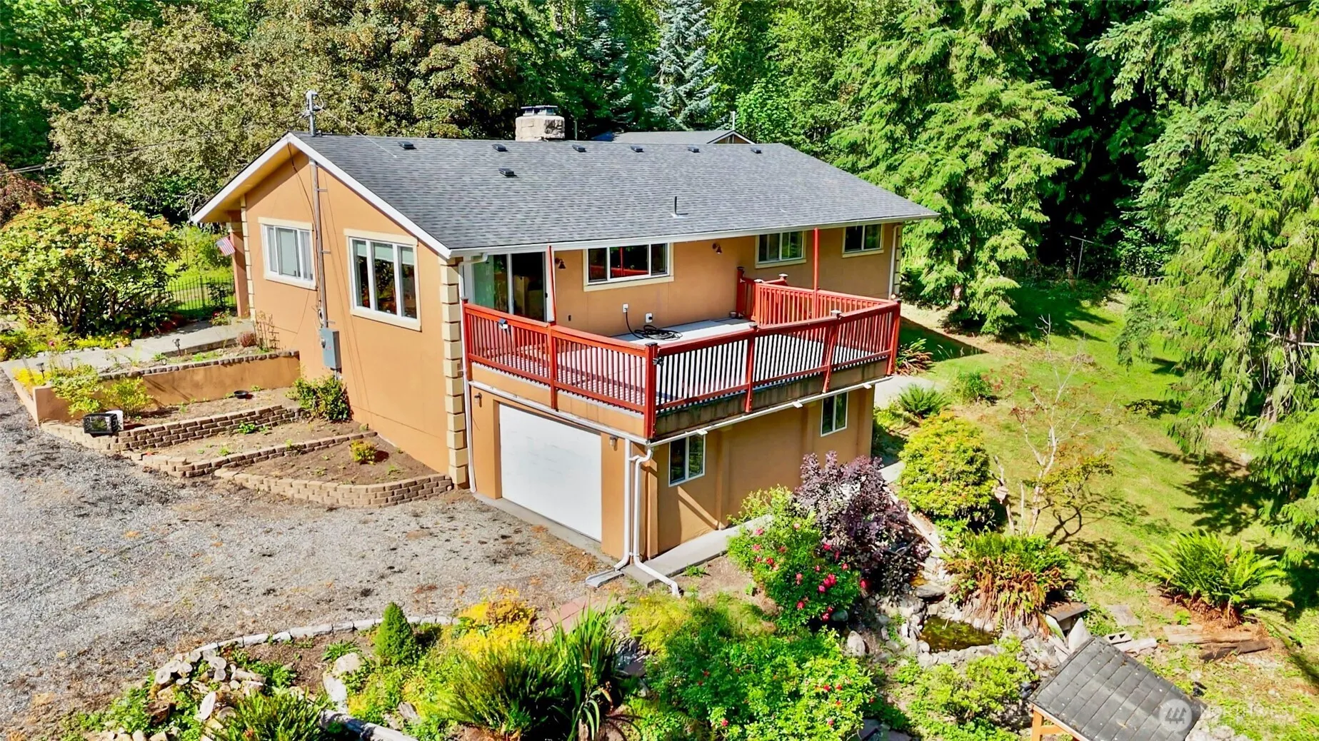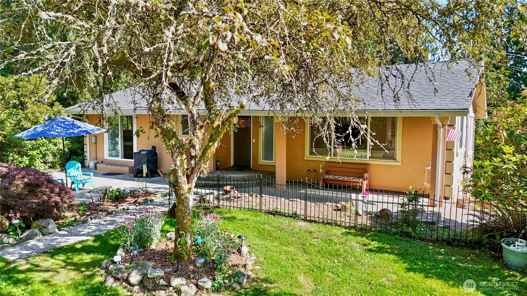 Nestled on 2 acres of lush natural beauty, this property flourishes w/ abundant wildlife & fruit trees. Relax by the natural spring-fed pond that meanders through your yard. Inside you’ll find 3 bd, 3 baths, 2 spacious living areas, & a rec room. The kitchen showcases unique cement countertops & a stone backsplash. Downstairs offers it’s own private entry & a 1 car garage, creating ideal space for extended living. A detached art studio offers its own bath, full kitchen, W/D hookups, & a cozy loft—perfect for inhome office space or guest space. Shed w/ water & electricity plus RV hookups. Recent updates include a new roof-2023, a hot water tank, & an upgraded electrical panel. The fully fenced yard features newer fencing & a gated entry.