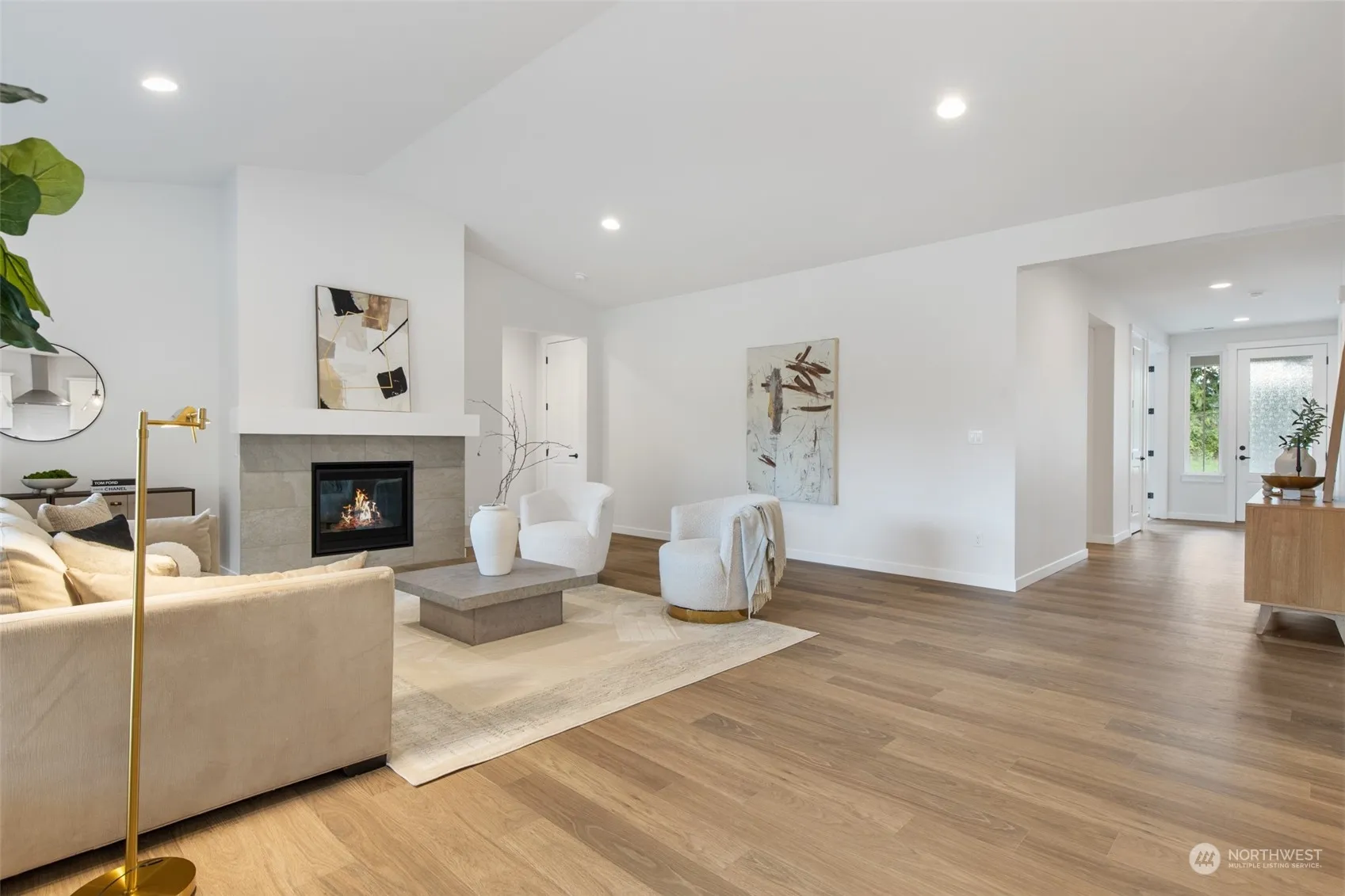 Final single story home in Noll Terrace by JK Monarch Fine Homes. Homesite 26 features our 2286sf rambler plan w/ 3bds + office/flex space (4th bd). Stunning features throughout including Vaulted GR ceiling, gas fireplace, 8′ interior doors, wood wrapped windows, wide planked woodgrain floors, frosted privacy windows in baths, black exterior windows & Heat Pump (A/C). Gourmet kitchen has quartz counters, SS appls: 5 burner gas range, SS hoodfan, D/W & built-in micro. Large kitchen island & soft close cabinetry too. Primary suite is tucked away & has 5pc ensuite + walk-in closet. Outdoor covered patio w/ gas stub plus fully fenced & landscaped w/ front yard irrigation. Photos are of same plan, may contain upgrades. Move-in Ready!