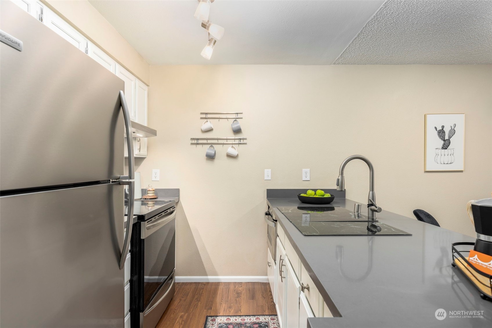 Spectacular views of Pt Washington Narrows and Olympic mountains from this GROUND FLOOR, END UNIT. Low maintenance 2 bed/1bath condo features 2 spacious bedrooms, updated bathroom, electric fireplace and views from the main living area. Efficient mini-split for heating and AC. Private balcony, perfect for watching the evening sunsets. Nicely maintained complex with community clubhouse and outdoor pool. New siding on back side, front side coming soon! Just minutes from PSNS, ferry, restaurants and shopping. HOA dues cover: water, sewer, garbage, earthquake insurance, exterior maintenance and common areas. Private covered parking space & heated storage unit too!