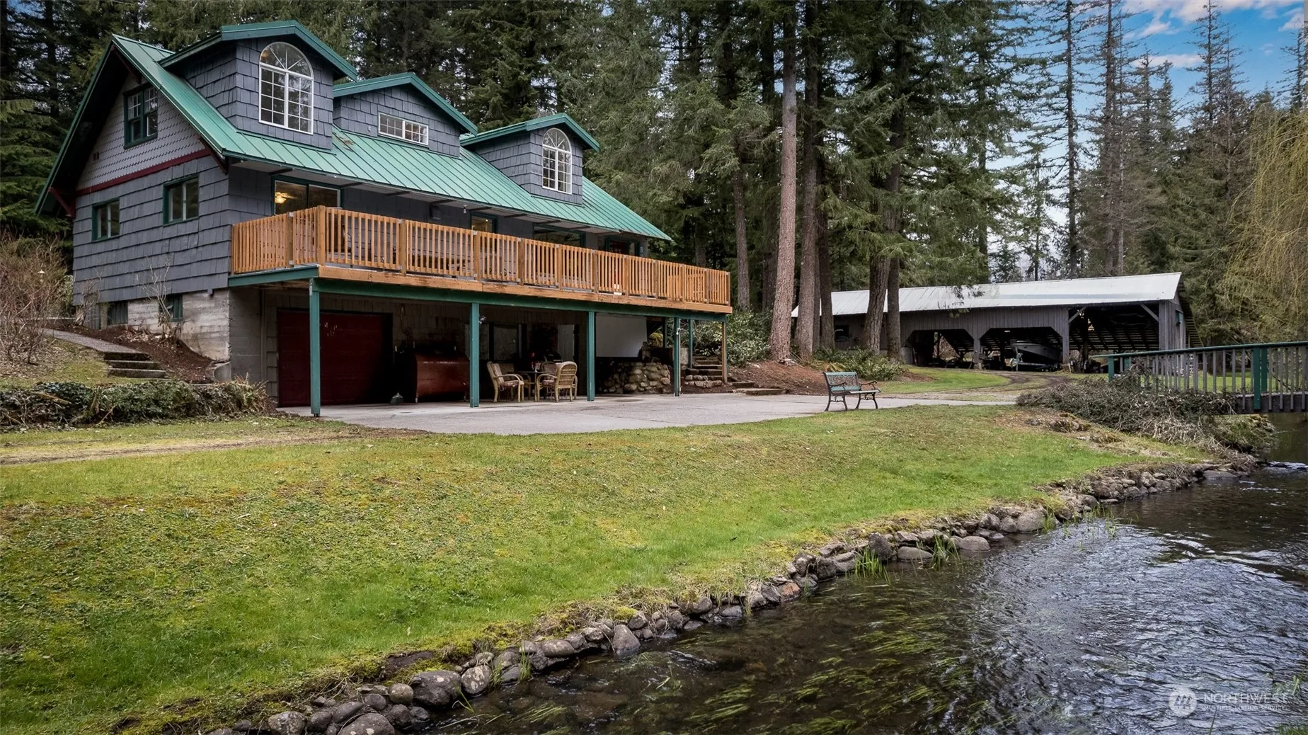 20 gorgeous acres complete with a classic Northwest Craftsman Home alongside a stream and surrounded by towering evergreens. Located amidst a plethora of outside entertainment…skiing, horseback, hiking, climbing, hunting & fishing, Silver Lake & mountain biking too. Every room has a view. The Kitchen & dining room share a fireplace & the woodstove keeps the living room cozy. Upstairs is freshly remodeled. Lots of extra space downstairs. Lifetime roof. Lodge Style entry. Huge Shop for 7 cars. Private acreage combines massive conifers w/a 9-hole golf course, close to miles of state and federal land to recreate in! Horses, weddings, hiking, vacation rental & Golf of course…or all of it. Location, location, location!