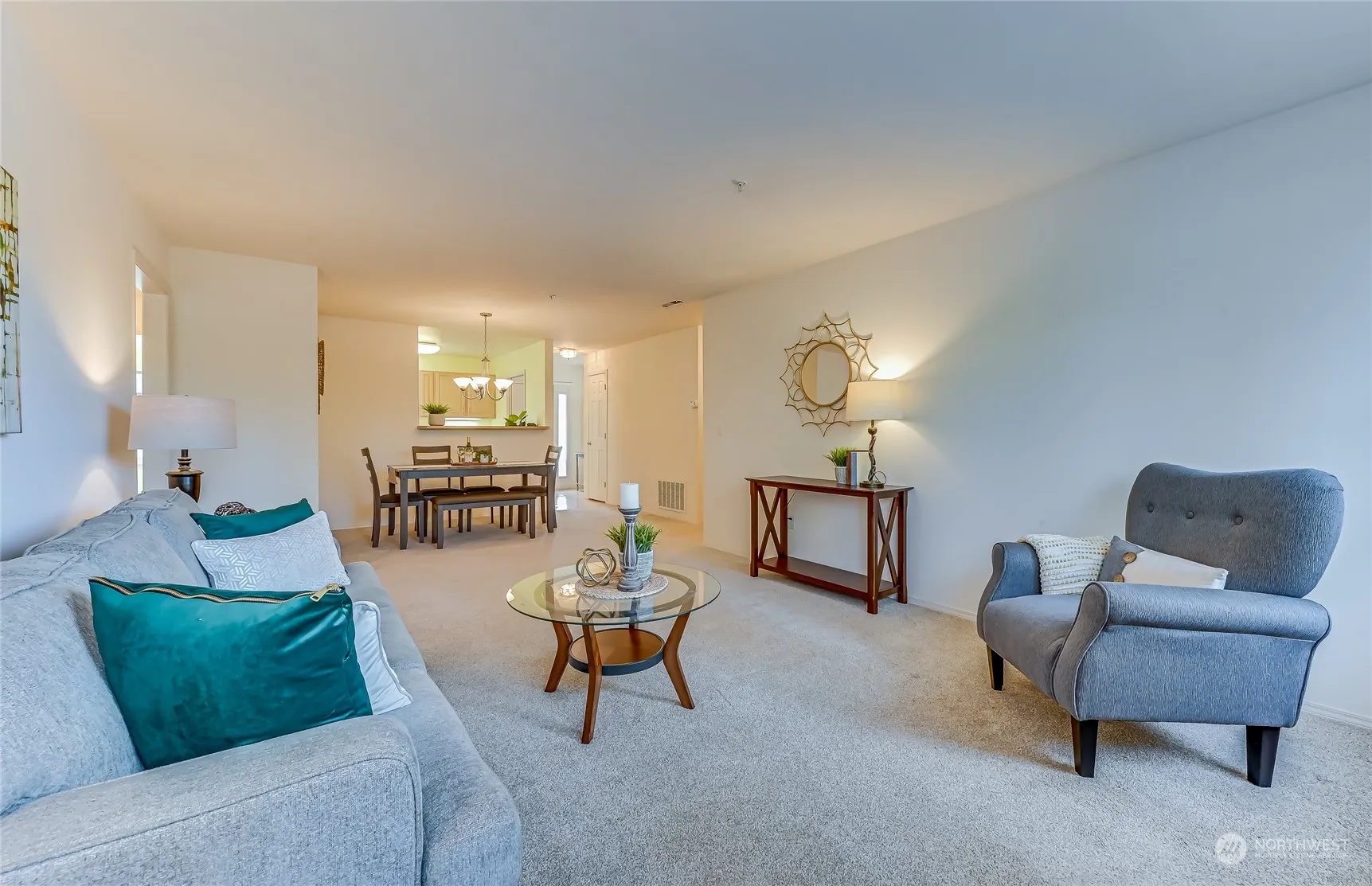 Charming light and bright townhome in premier 55+ Providence Point. This floor plan is packed with features! Open design living and dining with elegant gas fireplace. Galley kitchen opens to spacious nook/den/office and walk-in pantry. Bedroom and 3/4 bathroom on the main floor, along with additional storage closets and full size washer & dryer. Everything you need requires no stairs! Private primary (or guest) suite upstairs with walk-in closet and full bath. Attached garage with shelving, and front garden with white picket fence. Live independently in a vibrant community of amenities and social activities including indoor pool, clubhouse, classes, tennis, pickle ball, putting green, pea patch, trails, social/cultural & sporting events.