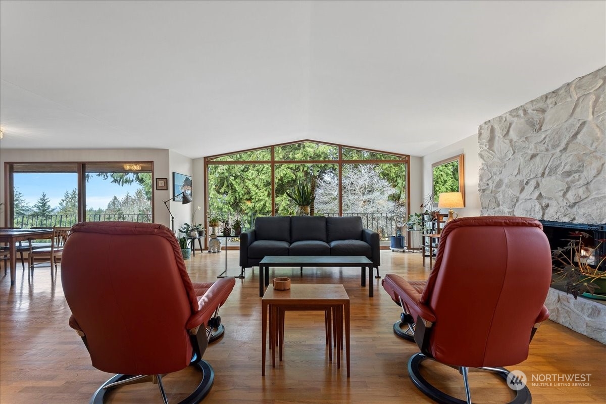 Indulge in this contemporary home which features 5+ beds,3 baths, a library, a built-in shop, and over 4,000 sq ft of living space including a main floor primary suite. Custom finishes throughout and well-kept original charm, from the stylish kitchen with high-end appliances and granite countertops to wall-to-ceiling windows caturing the views.Two distinct living rooms-one on each level,are uniquely crafted to provide versatile spaces for relaxation and entertainment. Well designed low maintenance landscaping give park-like setting,enjoyable from house length decking. ALL this on Little Mountain w/miles of trails,and a summit lookout, perfect for nature enthusiast & Mt Bikers,also located near local amenities,schools,freeway access,& parks.