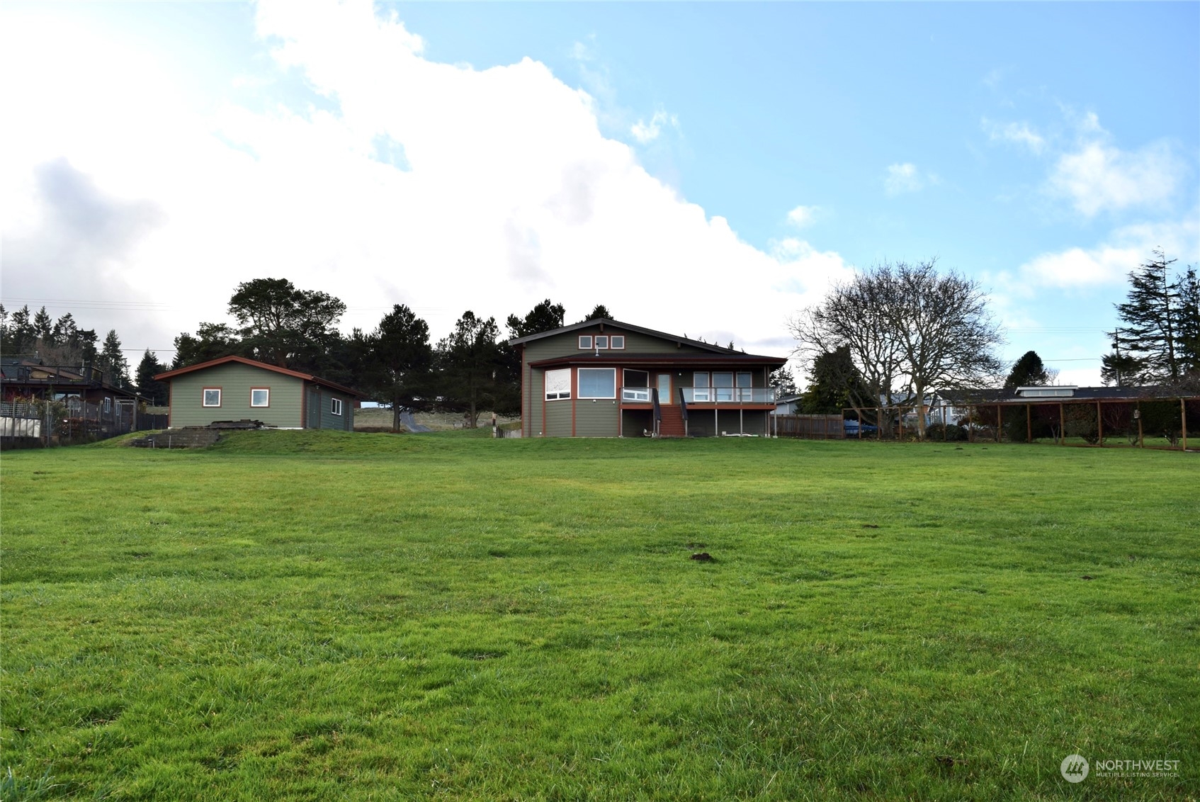Fabulous home on 2 acres with panoramic water view of the Strait of Juan de Luca, from Victoria to Mt Baker. Custom features throughout. Large, no step, open floorplan great room has water view kitchen with lots of storage space & huge walk-in pantry. Beautiful, wood wrap view windows in the main living area & master bedroom. Art gallery hallway. Stunning bathrooms, small office room & large extra room. Basement has been shop. Finished garage has 220, 30 amp & exhaust fan for welding.