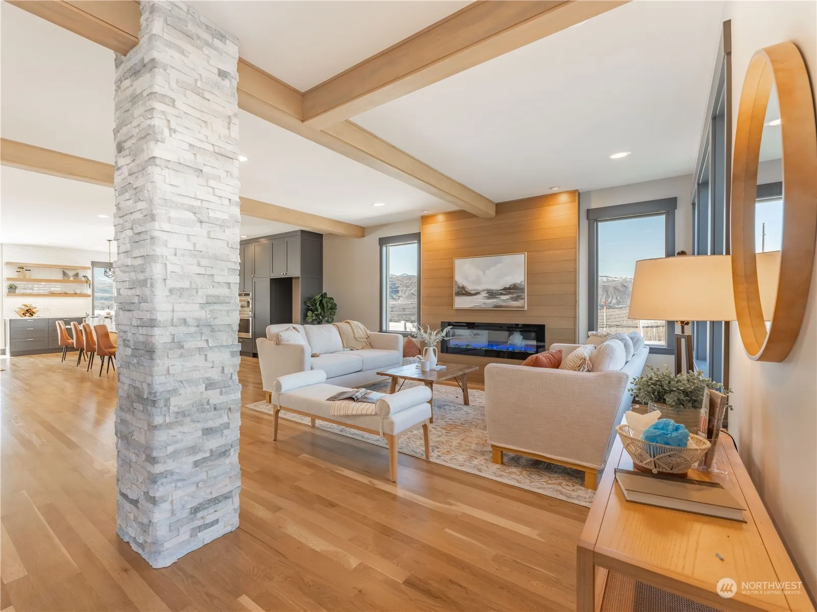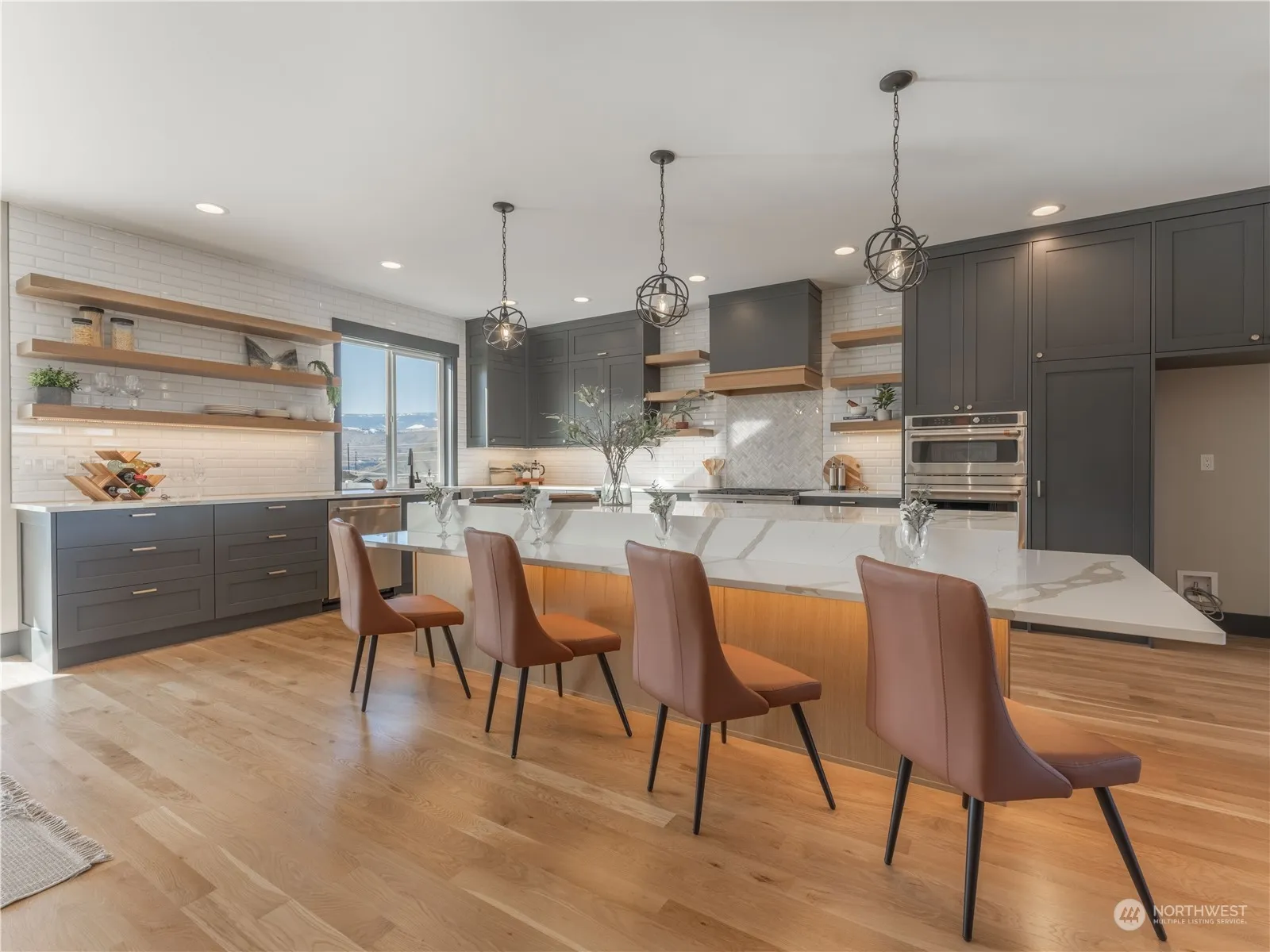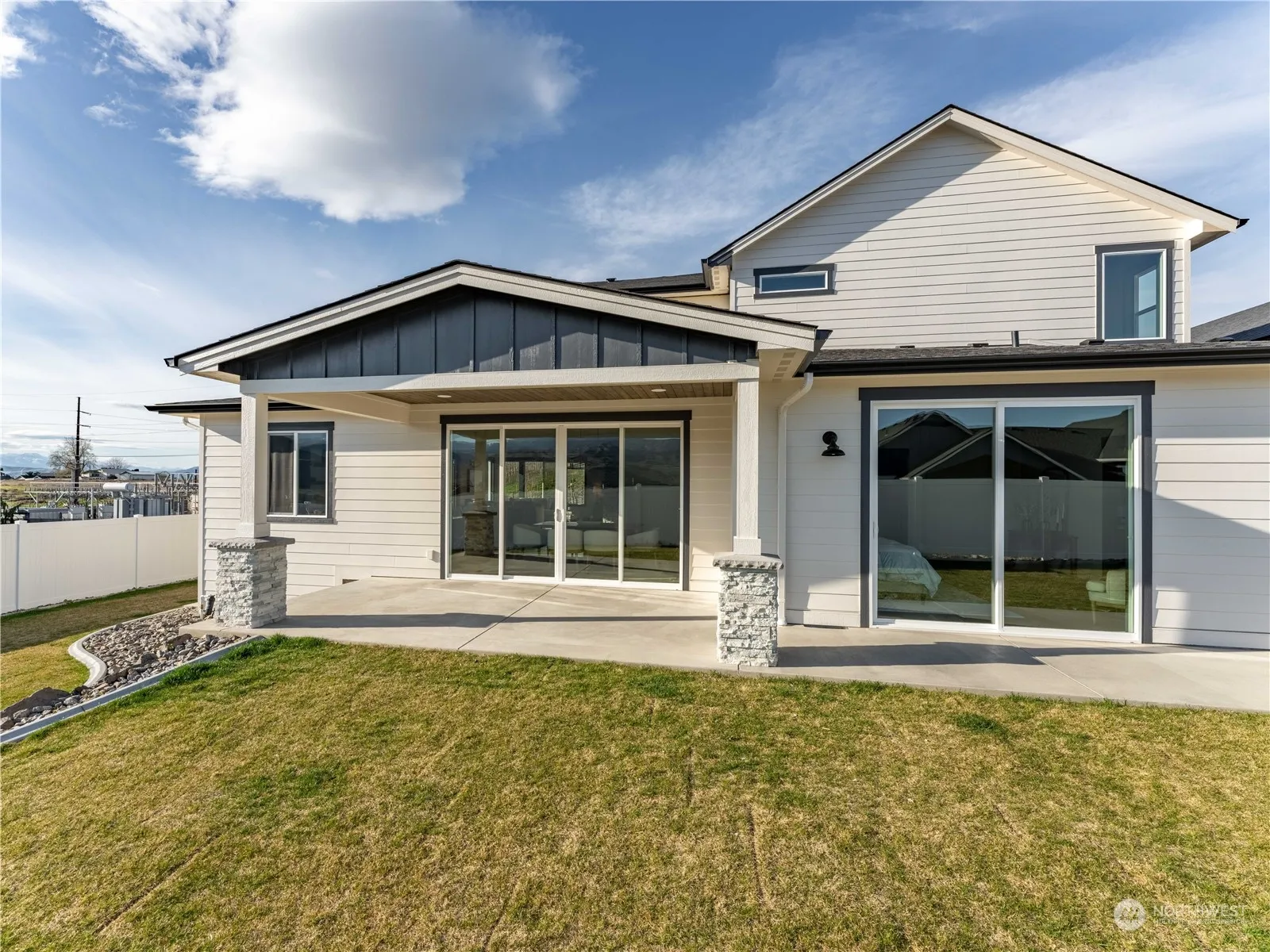 Pinnacle of contemporary living by Aaron Jones Construction. This exquisite two-story home seamlessly marries sophistication with functionality, offering 3306 square feet of lavish living space alongside an expansive 1676 square foot garage featuring an RV Bay—a testament to modern comfort and convenience. Main floor emanates a cozy ambiance with oak floors, creating an inviting atmosphere. Designed with ease of access in mind, the primary bedroom resides on the main level. Be enchanted by the culinary haven that is the statement kitchen. Adorned with sleek floating shelves and a custom island boasting a stunning waterfall edge, this kitchen is equipped with premium appliances and a dedicated wine fridge. Total of 4 bedrooms 3 ½ baths.