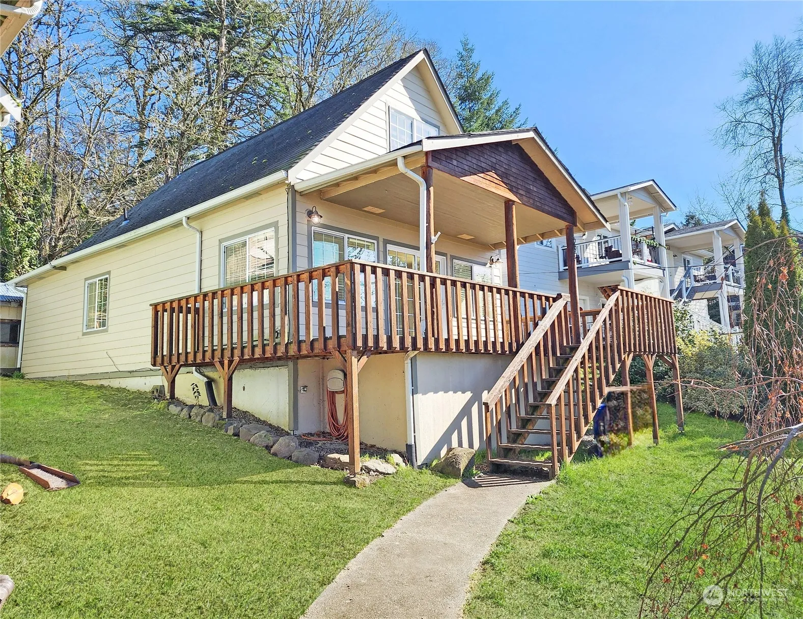 $10,000 Buyer credit for closing costs with acceptable offer. Welcome to this updated Chehalis hilltop home. A charming residence with breathtaking city views! This move-in-ready home offers a well-designed layout with the primary bedroom conveniently situated upstairs, complete with a private bath and laundry for your comfort. On the main floor, discover two additional bedrooms and a full bath. The open-style kitchen, living room, and dining area provide ample space for everyone. With new carpeting, you have a fresh and inviting atmosphere ready to decorate. Step outside onto the private back patio with storage shed or front deck with stunning views, both are perfect for relaxing or entertaining. Come see your dream home today!