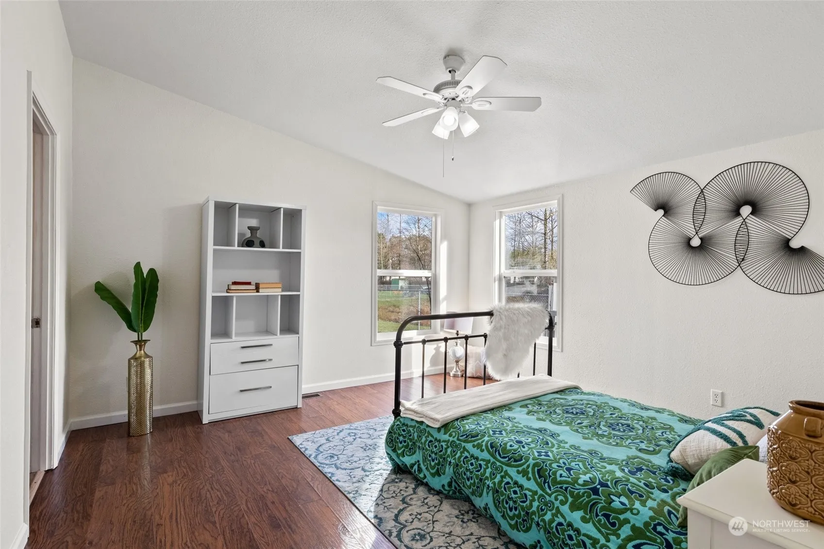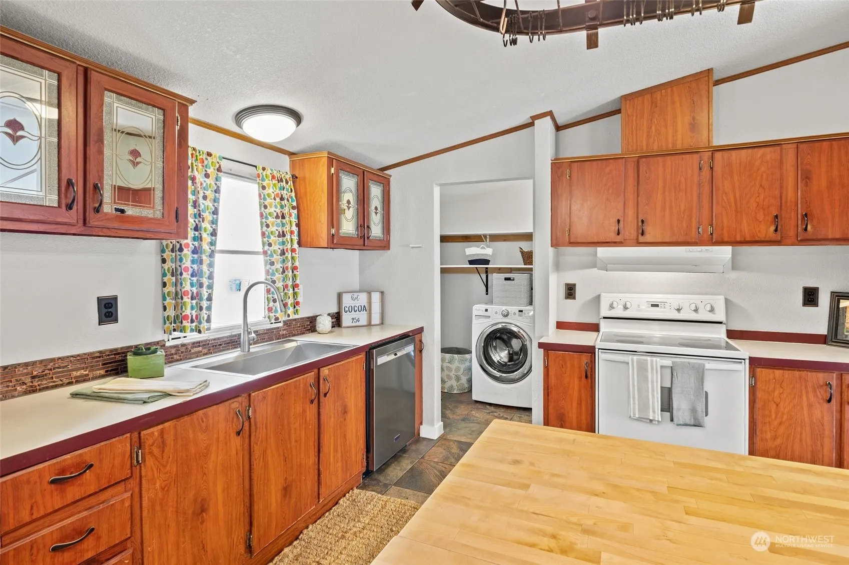 Start the year off right with this affordable housing in a great location. Warm and inviting, 1200 sq ft home is in a quiet corner of the park, has only one neighbor and fully fenced backyard, shed, and space to play and garden. This roomy 3 bdrm 2 full bath offers vaulted ceilings and ceiling fans with updated interior paint. Check out the primary ensuite with stand alone tub! New windows have been installed on 75% of the home. New PEX plumbing on east end of home. There’s even a built-in safe in the primary closet and built-in shelving in two bedroom closets. Newer hot water heater and all appliances stay! The kitchen houses extra storage under the bar space, and still has enough room for a dining table. Supplement shows updates and more
