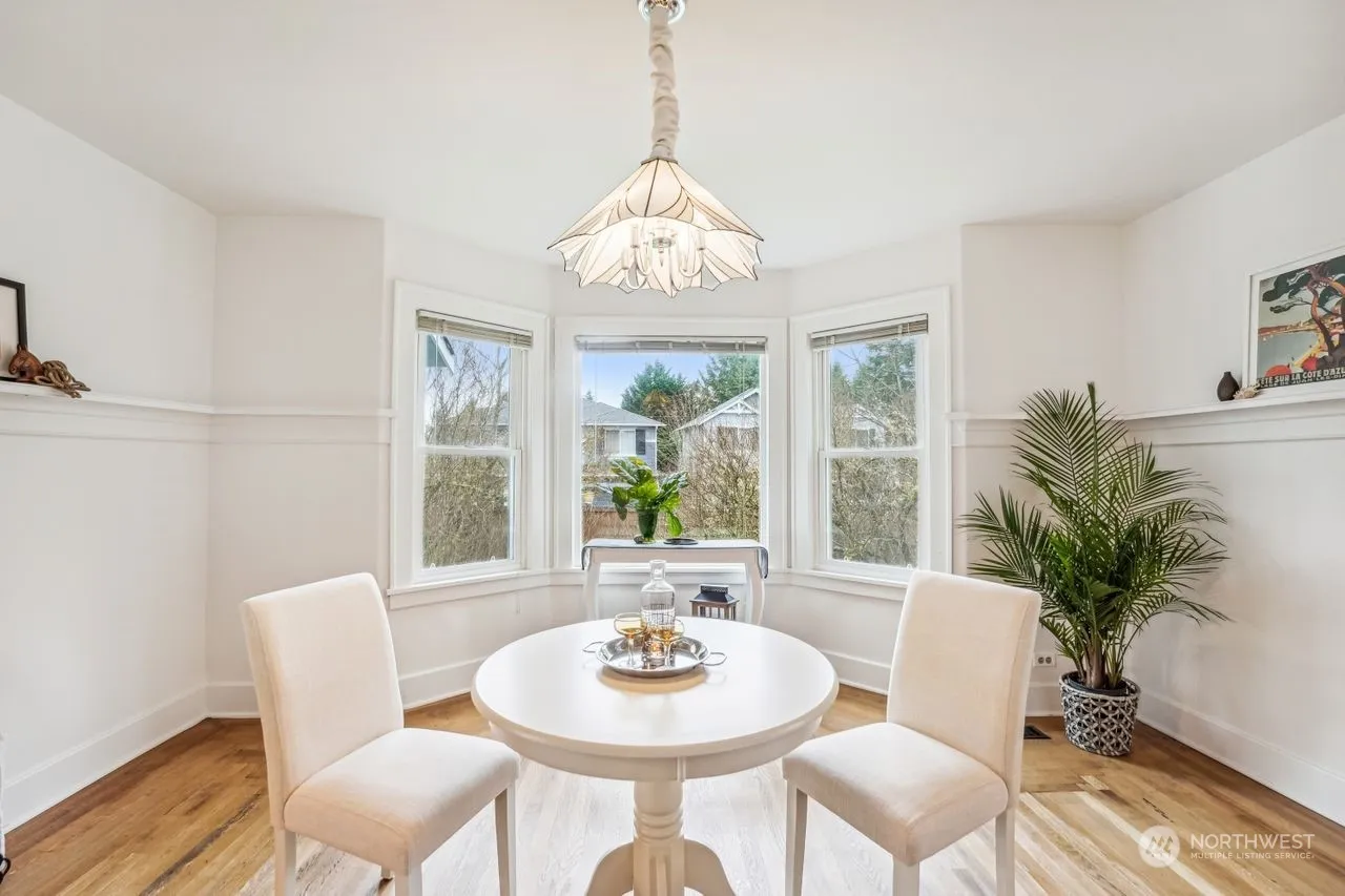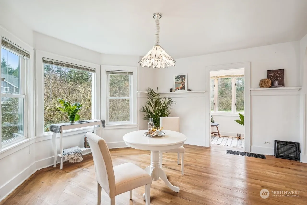 Welcome to the circa “1904 Poulsbo” residence. A timeless gem that seamlessly marries historic charm with modern conveniences. Nestled in the heart of a vibrant neighborhood, this enchanting property invites you in. The original character of the home has been thoughtfully maintained. The original hardwood floors, are gleaming once again, having been recently refinished. The dining room is a testament to the home’s timeless appeal, boasting a beautiful Victorian Bay window that bathes the room in natural light. One of the highlights of this property is the expansive yard. Ideal space for outdoor gatherings or simply unwinding after a long day. The mature trees provide shade and privacy, enhancing the overall appeal of the outdoor space.