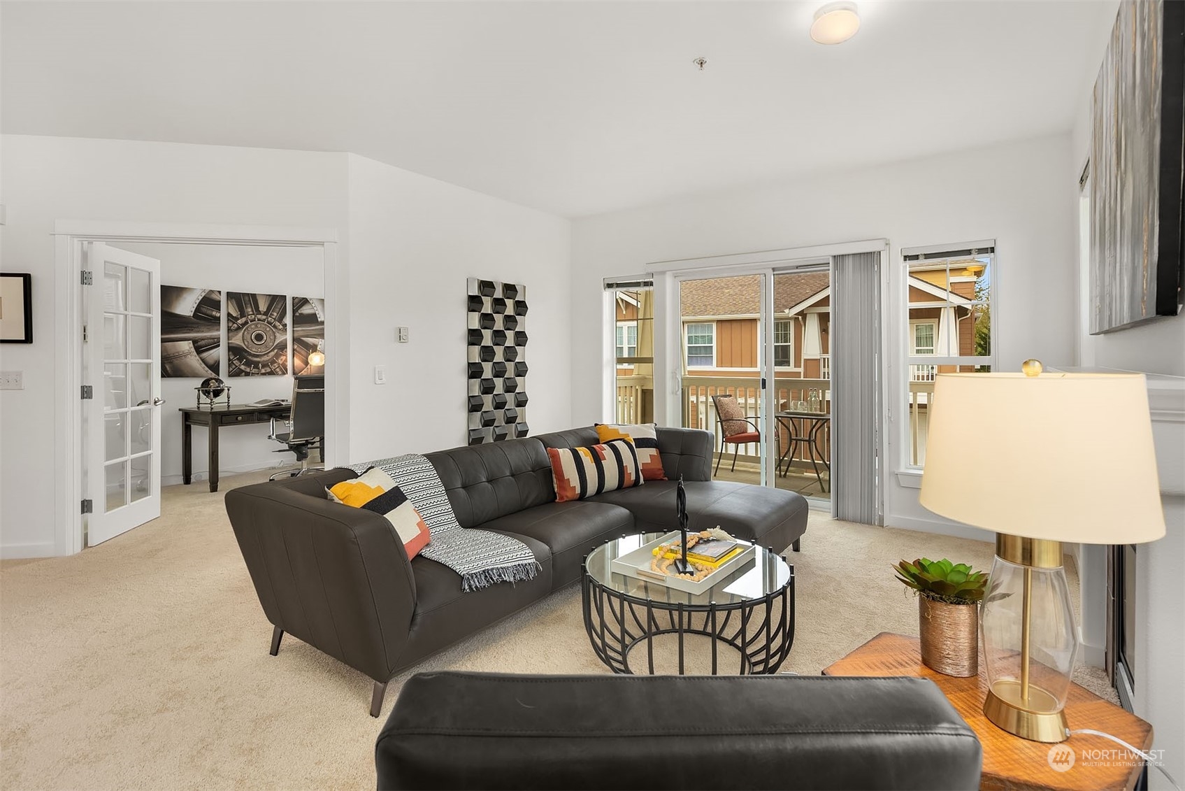 Beautiful light-filled, top-floor corner unit with new stove, refrigerator, sink, countertops, carpet, and paint. This three-bedroom, two-bath home is move-in ready. Originally, a featured model for the development offering designer colors. Convenient office/den off the living room and kitchen features French doors. Oversized garage has ample storage. Located near shopping, dining, & Library, YMCA and neighborhood trail. Private TPC Snoqualmie Ridge has a pool, dining, and golf for membership fee.