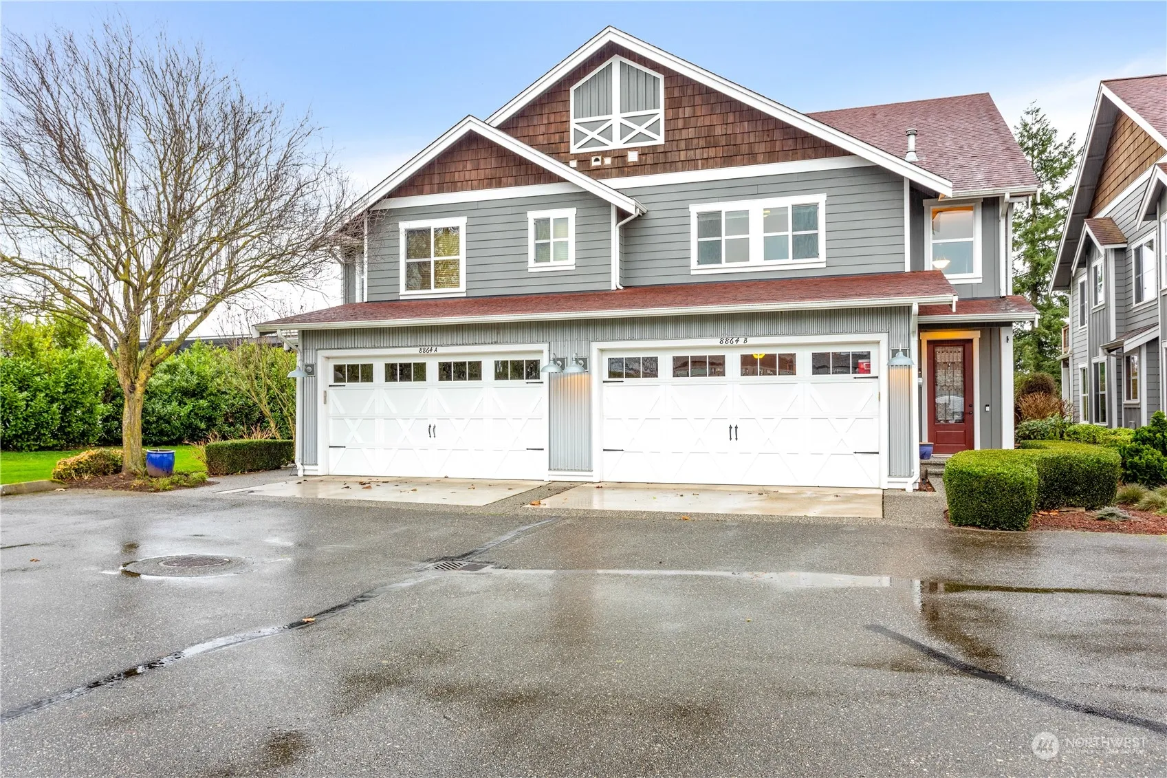 The Pointe at Homestead Farms. Luxury at its best in this welcoming fairway condominium with a panoramic & stunning view of wide open fairways. Vaulted ceilings–walls of windows capture the view bringing the outside in. Exceptionally designed great room with corner fireplace, upgraded cherry cabinets, and top-of-the-line detail finishes. Main level primary suite with large shower. A second upstairs primary includes a jetted tub and shower. All bedrooms have walk-in closets. Mt Baker views from the upper level. Don’t miss out on this one-of-a-kind property! Just steps from the clubhouse, restaurant, and health club.