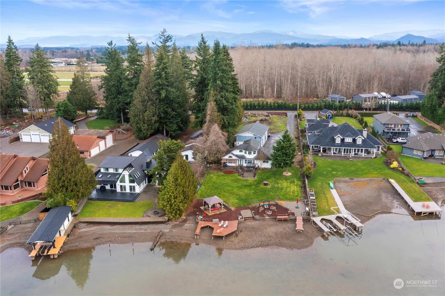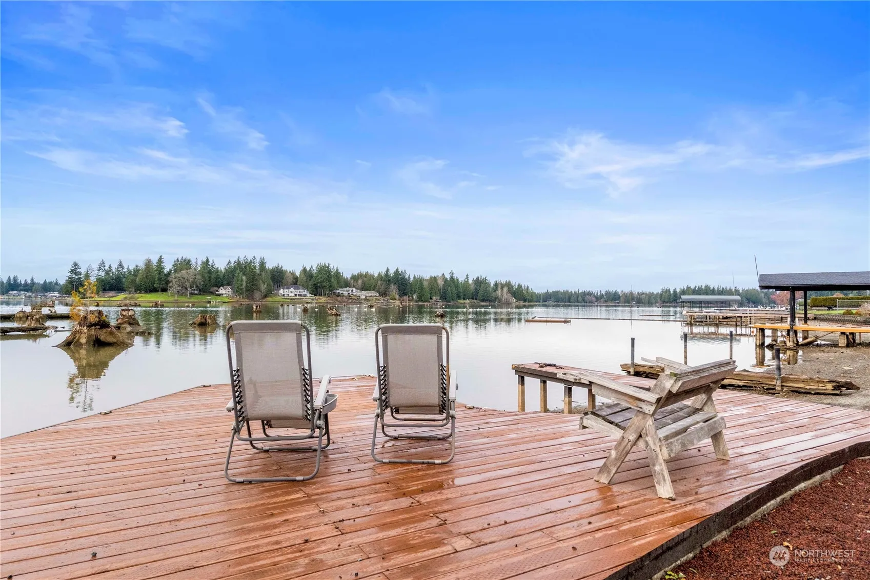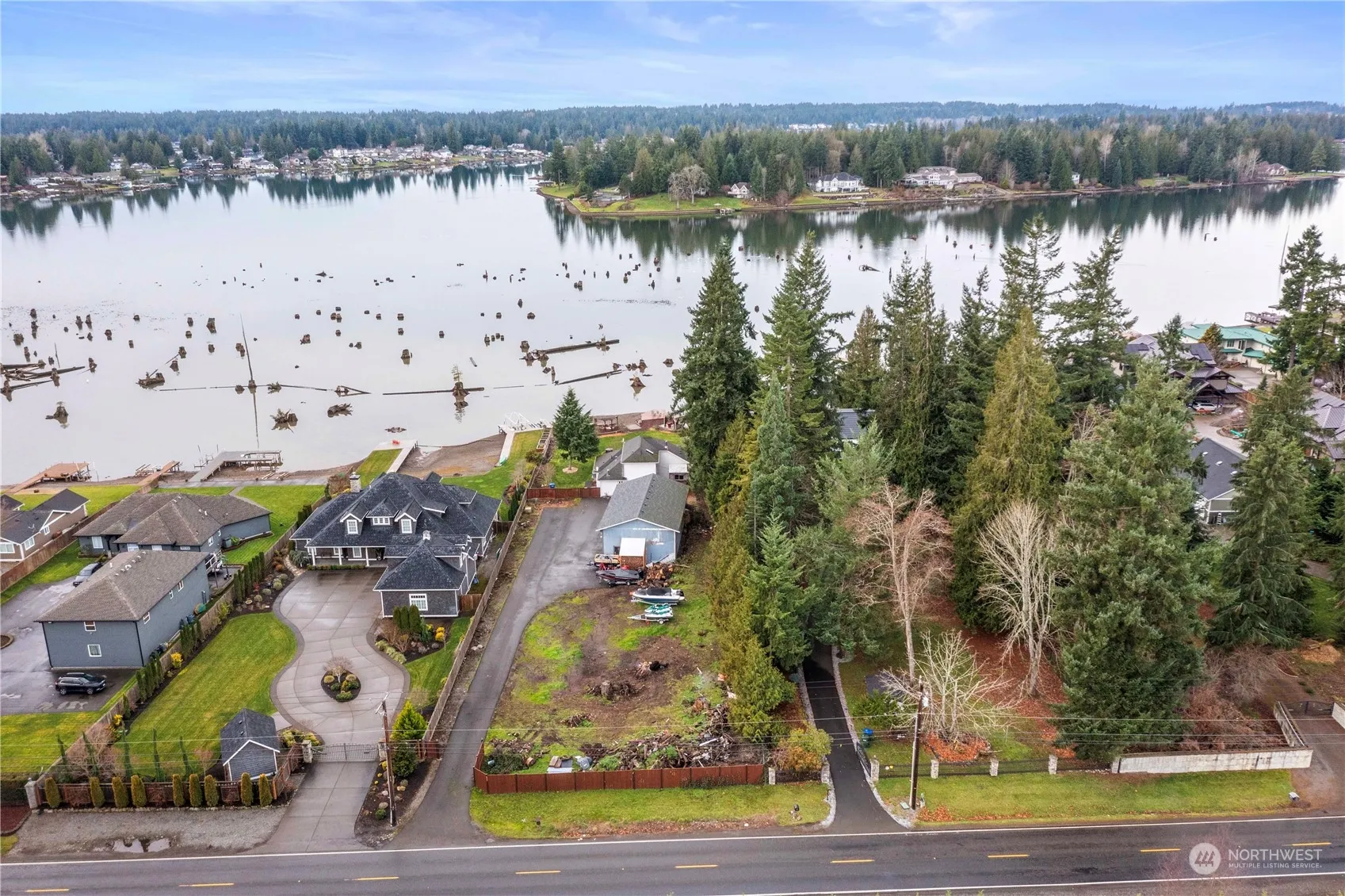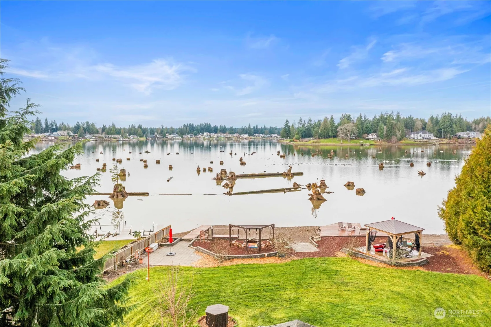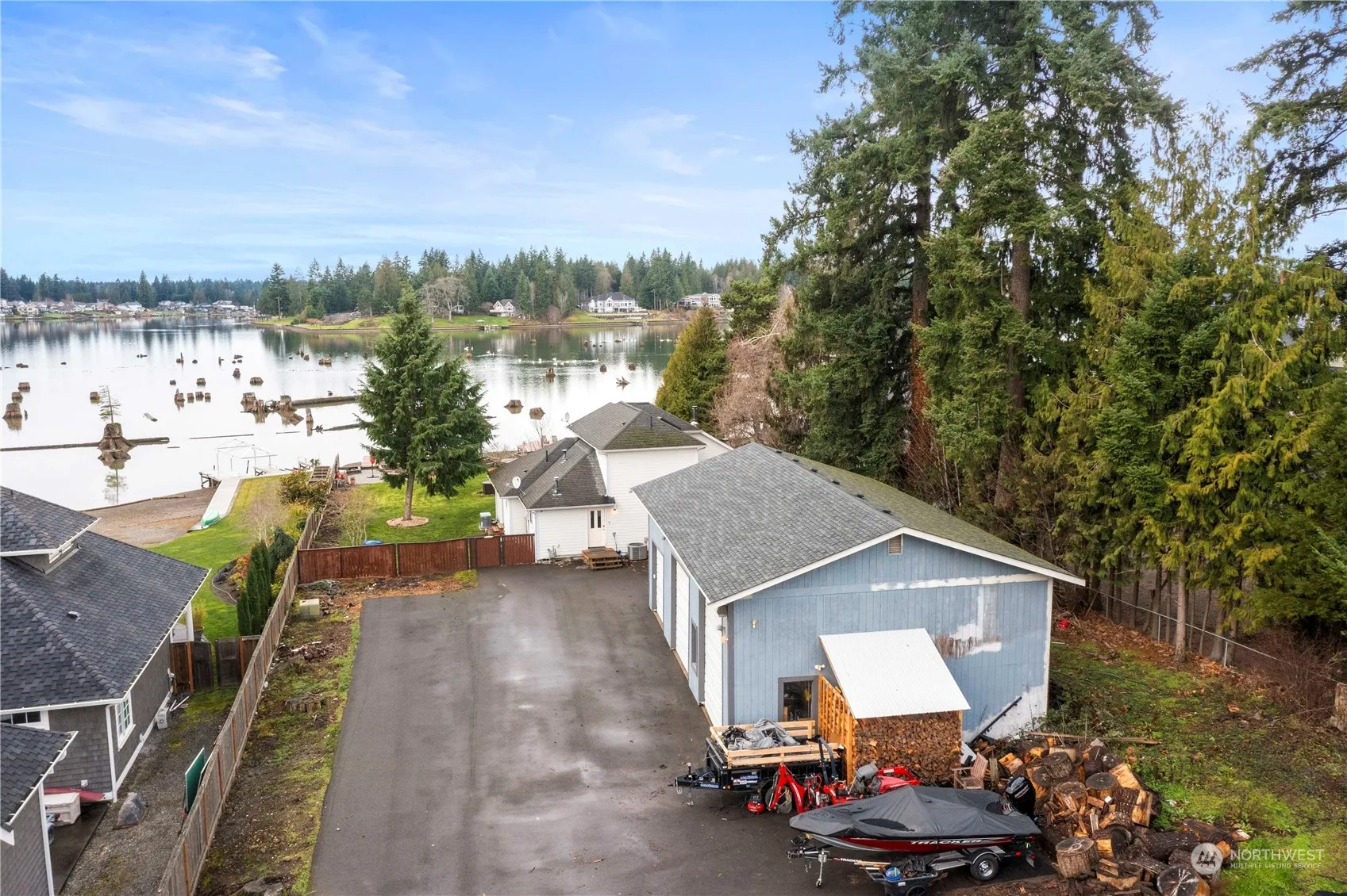 Opportunity knocks. Lake Tapps living featuring 100 ft of level, west exposure waterfront offering 2 docks, bulkhead, 1898 sq ft home and 1590 sq ft detached garage situated on .6 acres. Complete the cosmetic touches to enhance the rustic cabin feel or change the vibe completely to your vision. Systems have been well maintained & upgraded over the last few years. Newer roof on detached garage, furnace, heat pump & hotwater, newer wood stove, whole house generator. Home offers 3 bedroom spaces (one needs wall completed to enclose). Primary ste with attached bath & walk in closet. Cozy family room w/newer wood stove & slider to fenced yard. Updated kitchen with attached dining & door to deck with hot tub & space to play. Hardiplank siding.