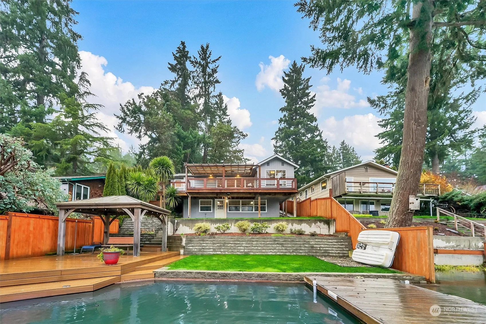 This remarkable south-facing lake home is on the best part of Long Lake. Enjoy million-dollar views from inside your home, raised decks or waterside cabana. This house on 1/3-acre, features wrap-around decks, private dock & endless opportunities for outdoor enjoyment. Swim, fish, watch wildlife, kayak, or wakeboard from your backyard! Abundant natural light enhances the open-concept design & chefs kitchen creating an entertainer’s paradise. The primary suite boasts his/her closets and a stunning master bath. A finished basement, ample parking, and potential to build a substantial garage adds more value. A brand-new roof, furnace, & septic system, provide peace of mind so you can fully embrace & enjoy the lake lifestyle. 2/1 buydown offered