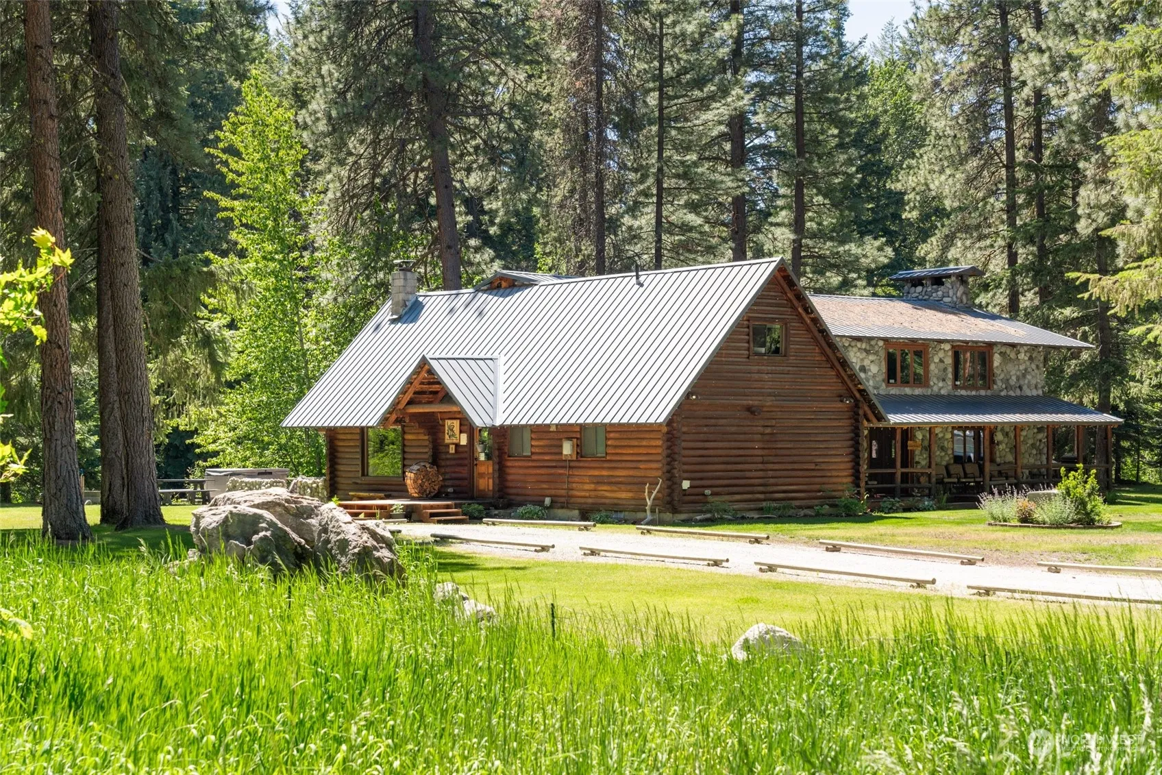Welcome to Chiwawa River Lodge – a beautiful 4+ bedroom, 5+ bath log and stone home on the banks of the Chiwawa River! Vaulted ceilings with exposed wood beams in the kitchen and dining room, large great room with stone fireplace, three bedrooms that have ensuite baths, and an open loft that serves as an extra bedroom area. Sale includes a one-time transferable Chelan County STR permit eligible for up to 8 guests at one time, and all furniture and furnishings for a turnkey occupancy at closing. Two legal parcels totaling 2+ acres with over 300 feet of premium low-bank river frontage. Enjoy access to the groomed snowmobile trail system, close to Lake Wenatchee, 18 miles from Leavenworth, and 30 miles from Stevens Pass.